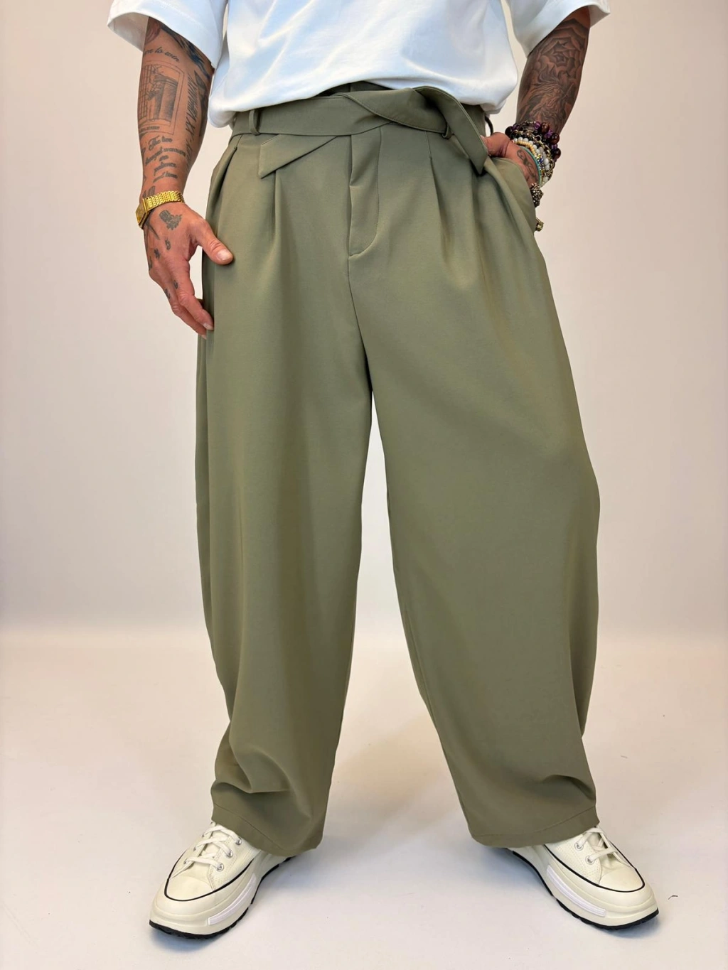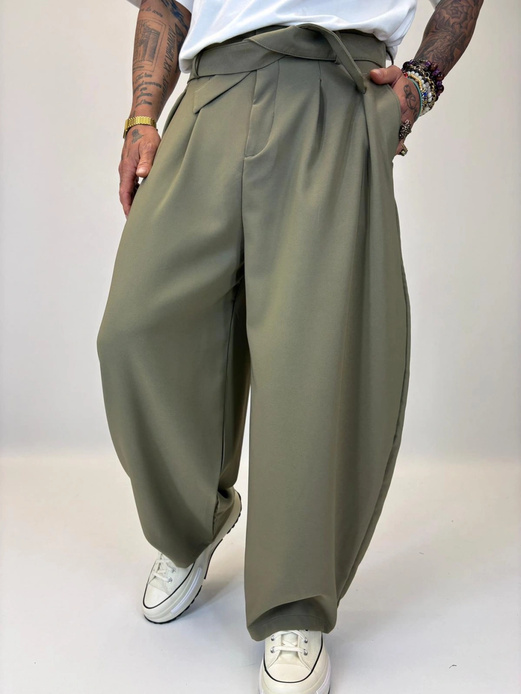 Baloon Kuşaklı Pantolon Haki