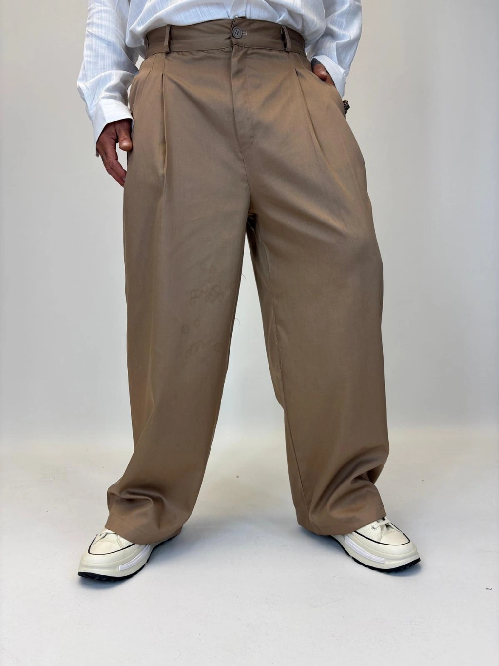 Baloon Pileli Pamuk Saten Pantolon Kahve