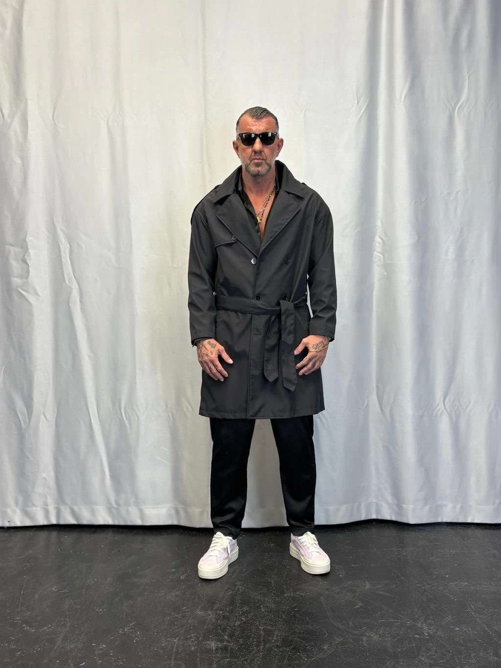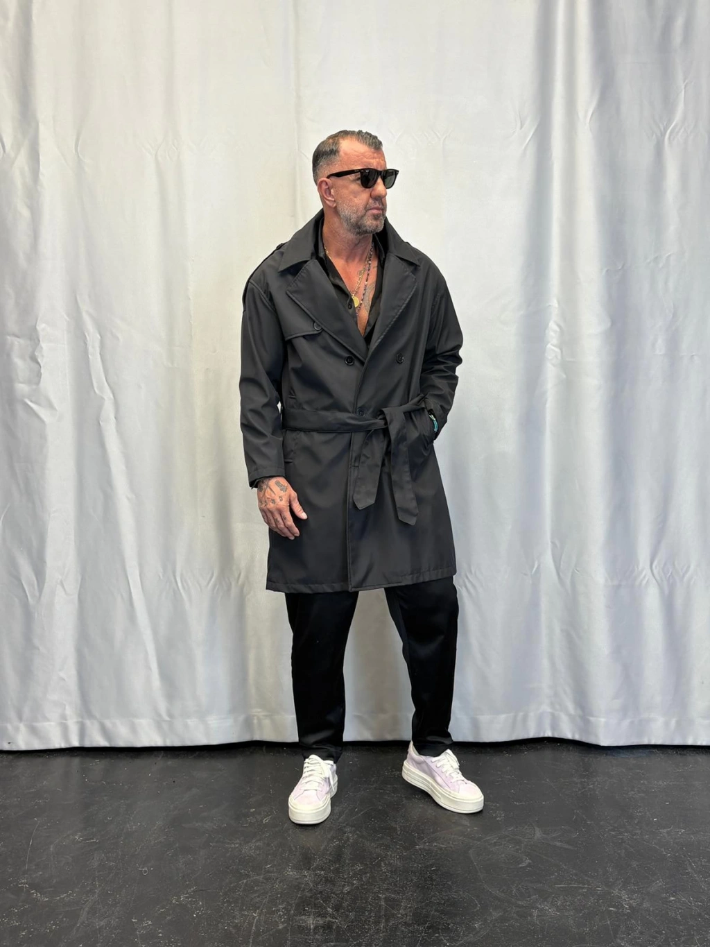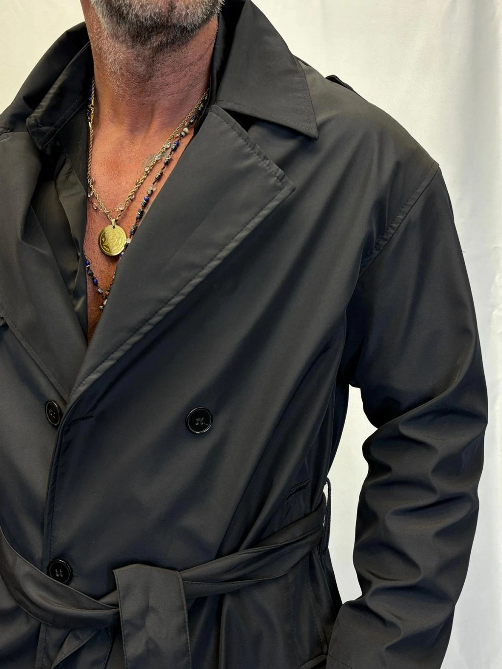 Bond Kaplamalı Kuşaklı Trenchcoat Siyah
