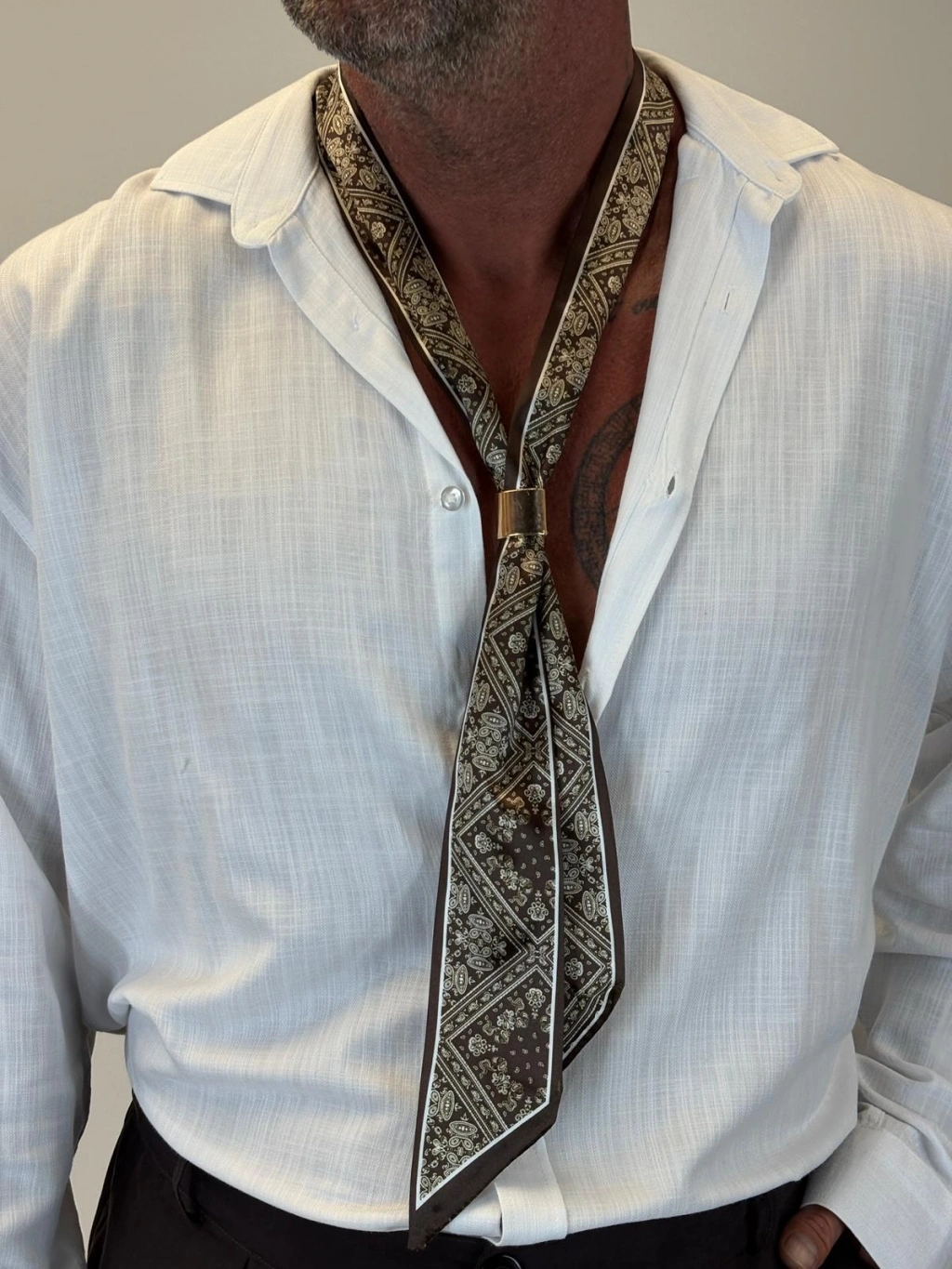 Broşlu Fular Aci Kahve Desenli
