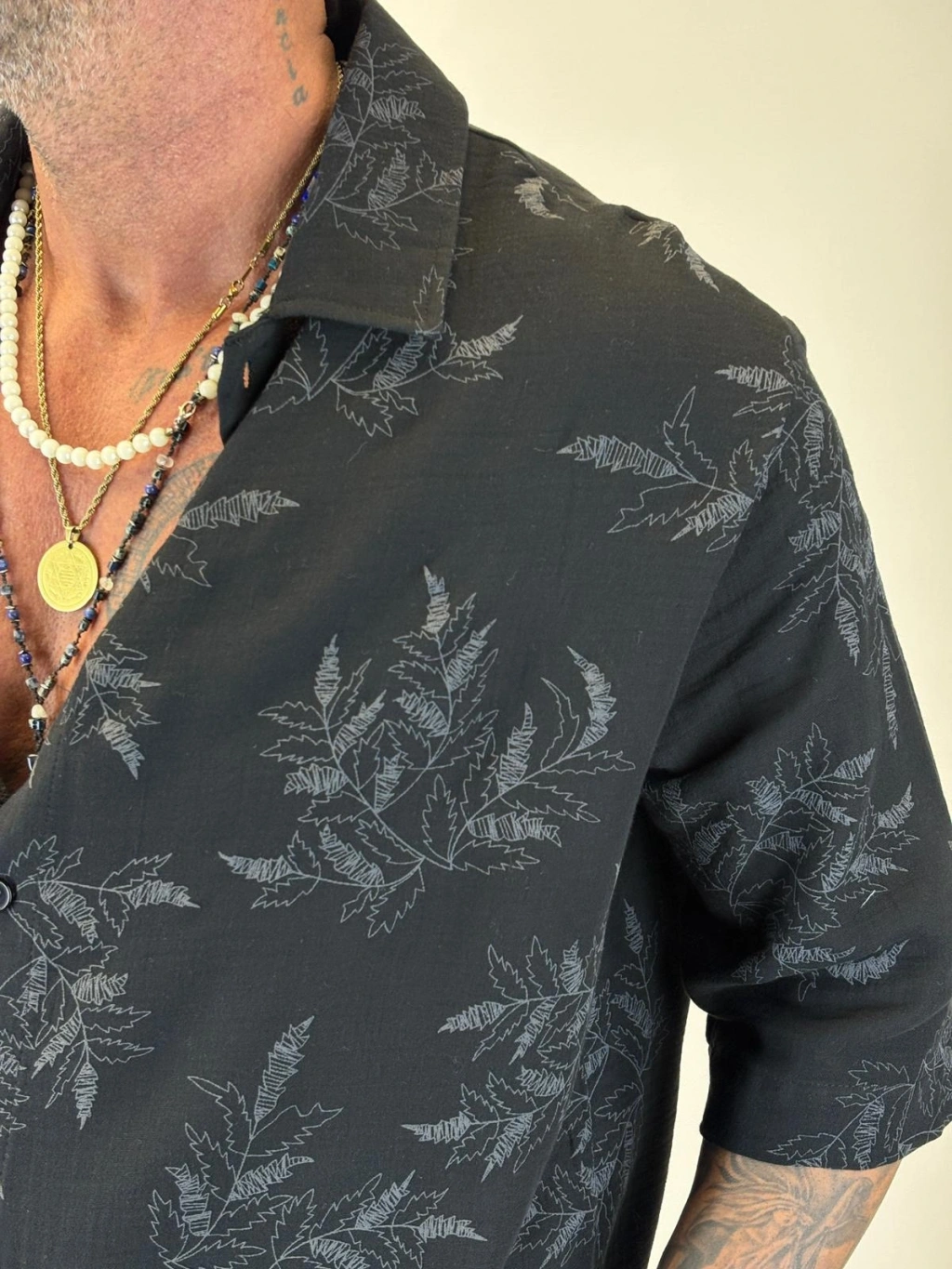 Crop Çiçek Nakışlı Tky Gömlek Siyah