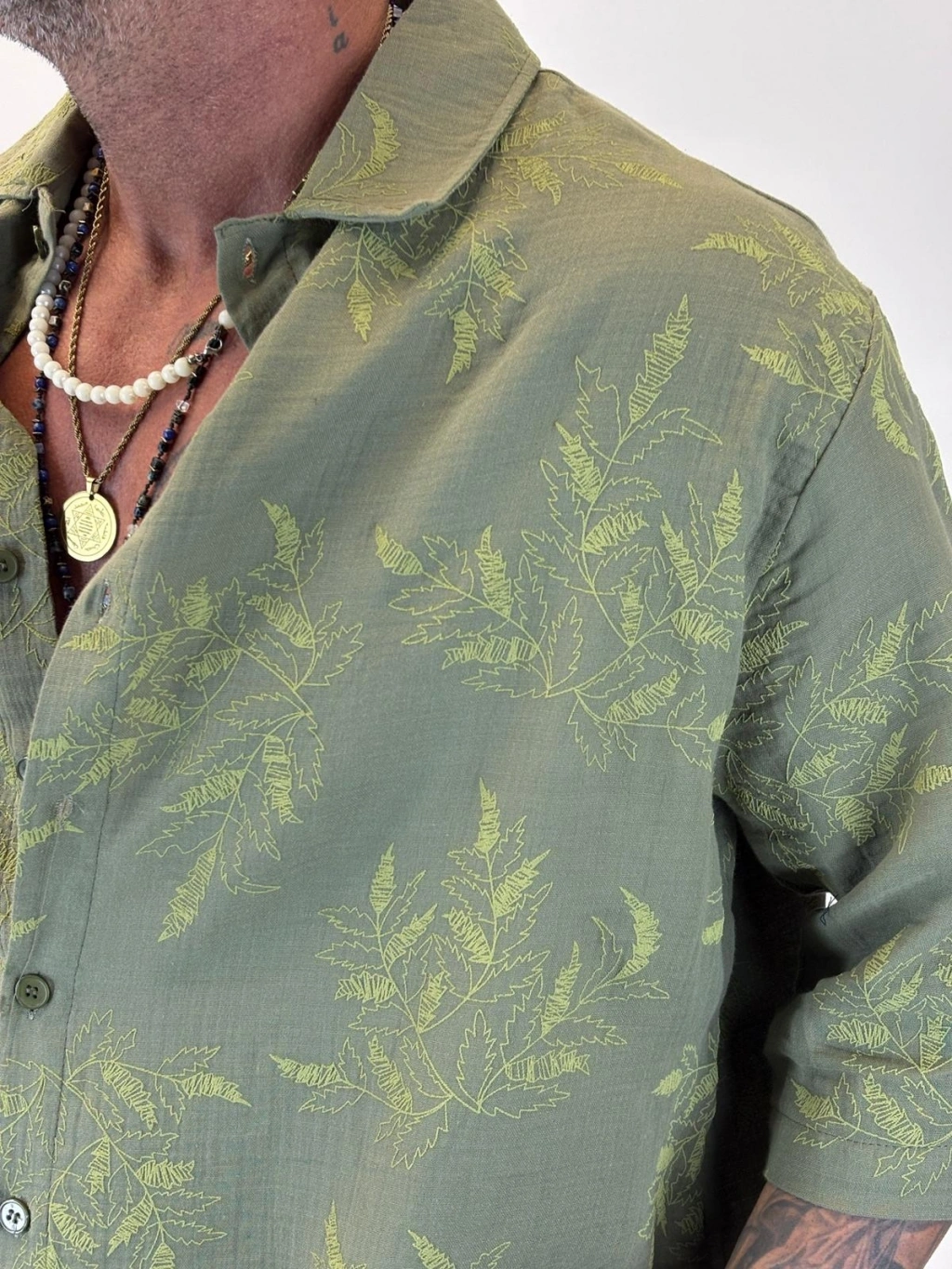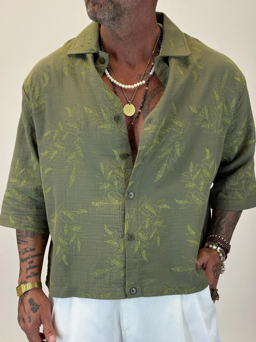 Crop Çiçek Nakışlı Tky Gömlek Yeşil