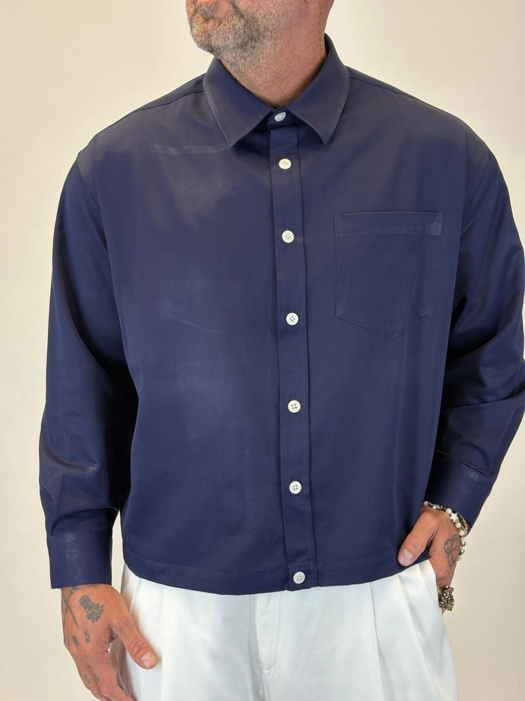 Crop Tky Pamuk Saten Gömlek Lacivert
