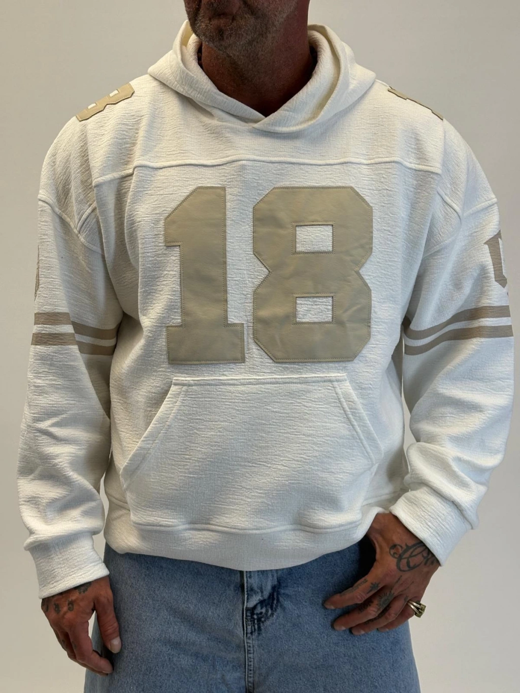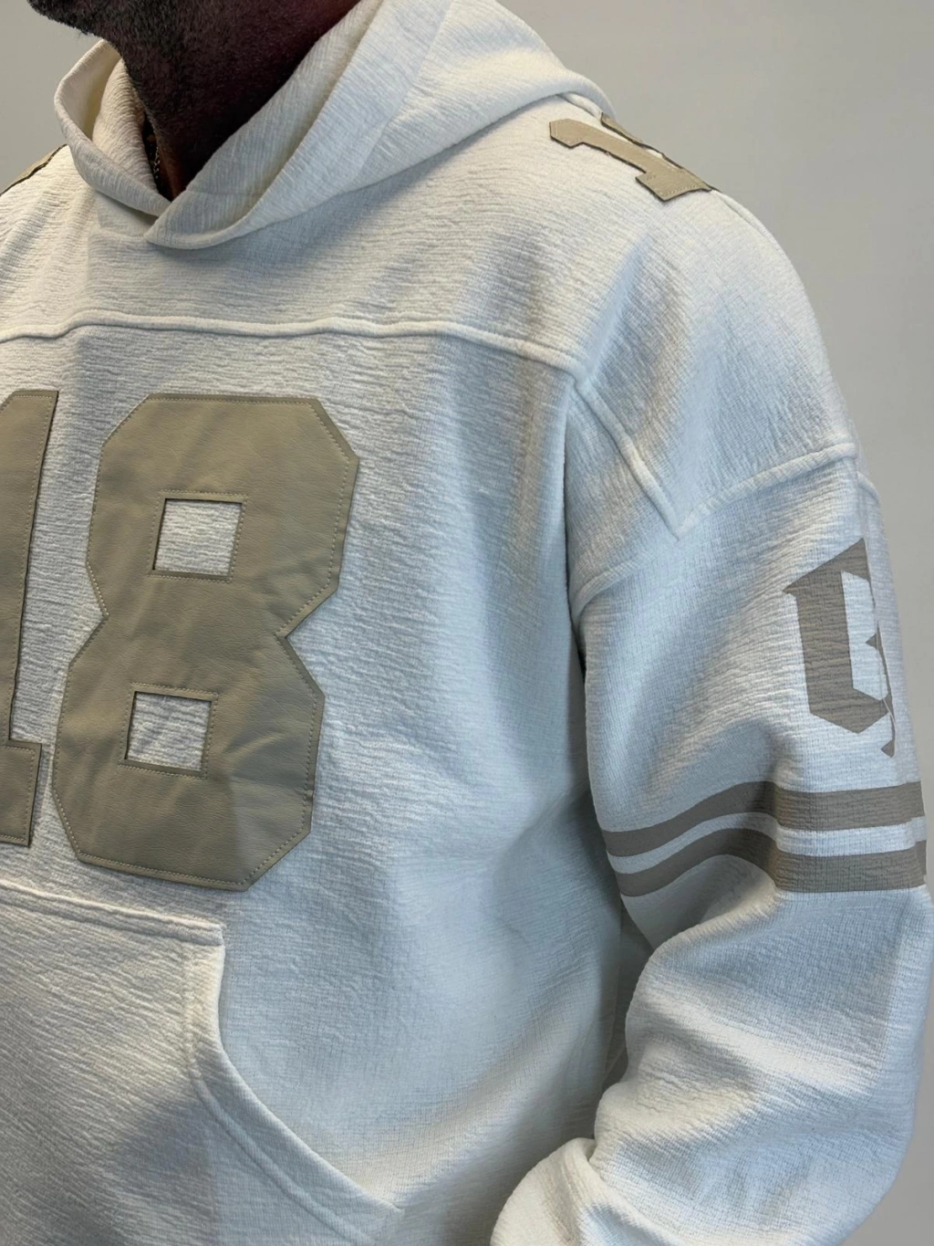 Guard 18 Nakış Detaylı Hoodie Ekru