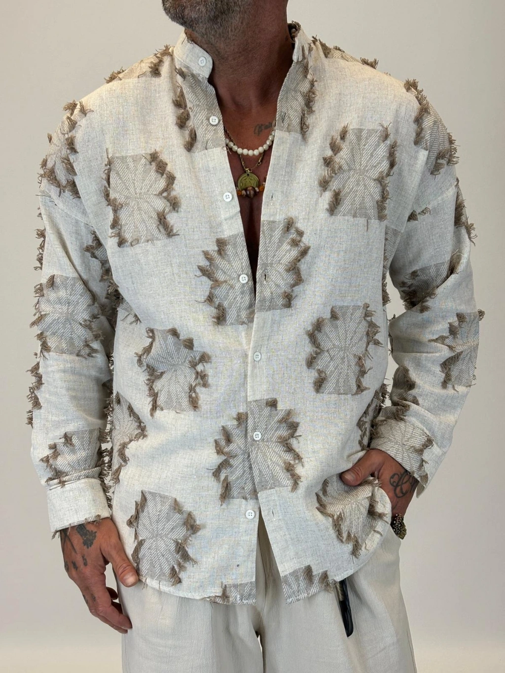 Hasır Örme Detaylı Gömlek Bej