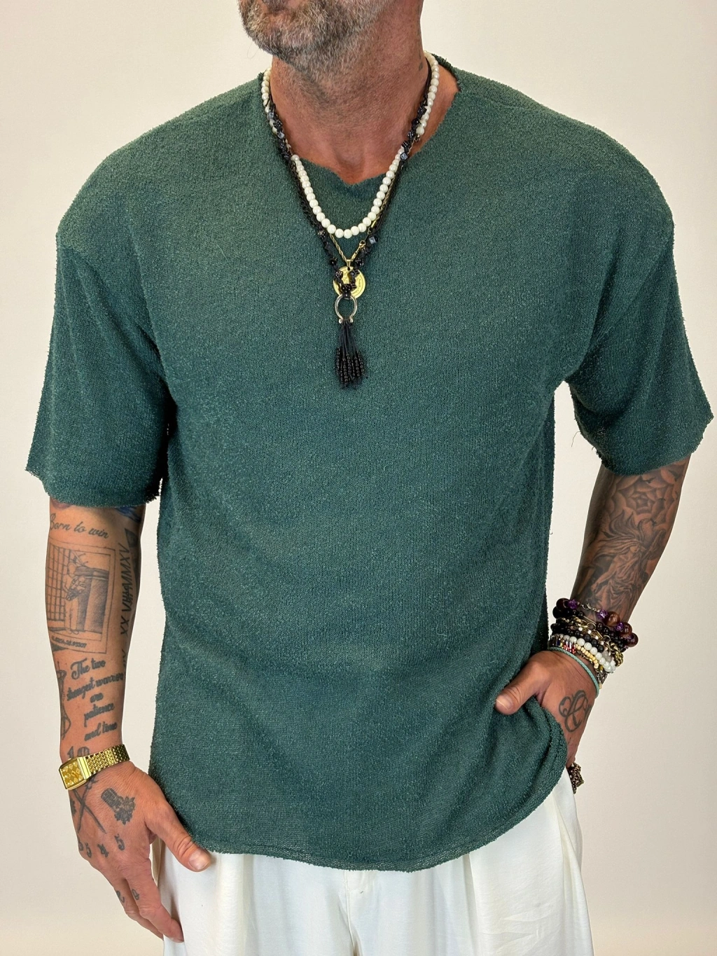 İnce Triko Oversize T-Shirt Yeşil