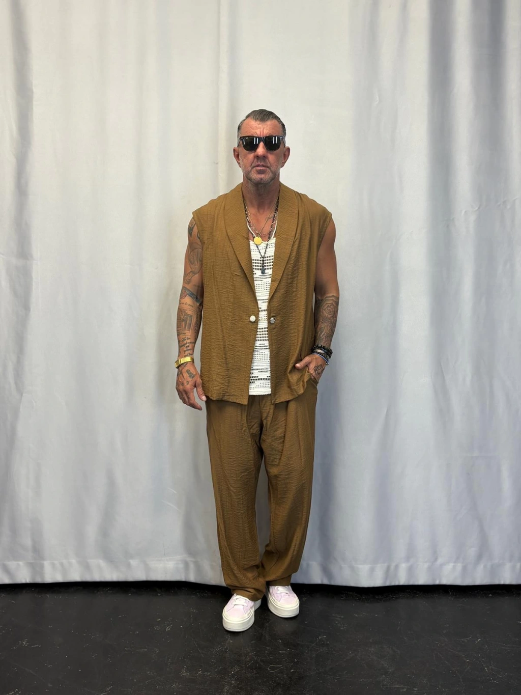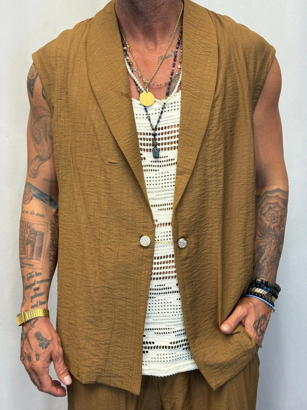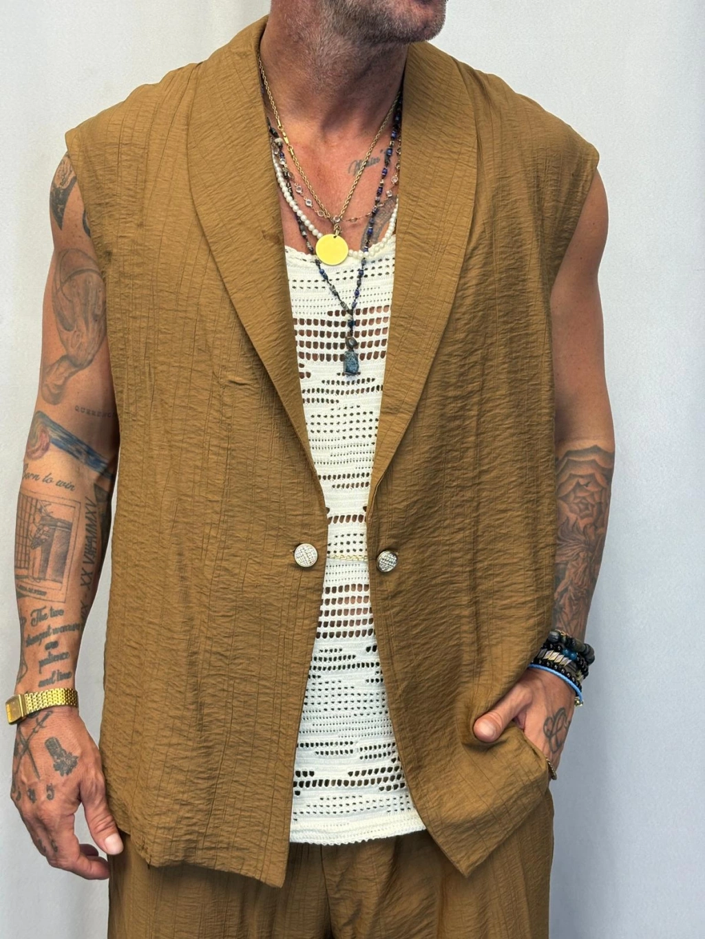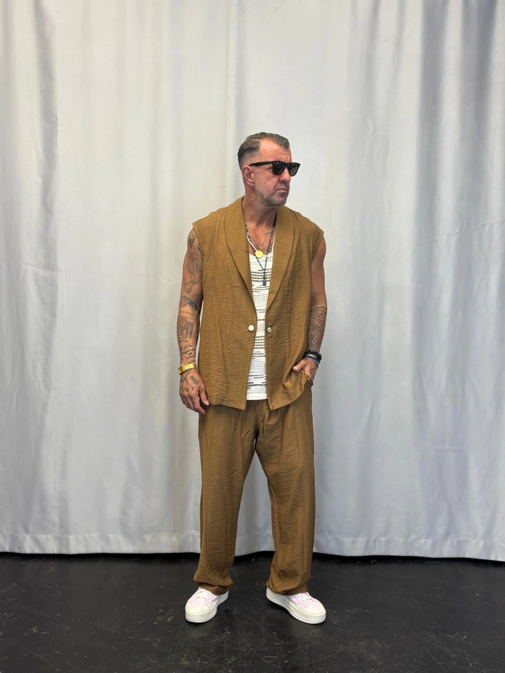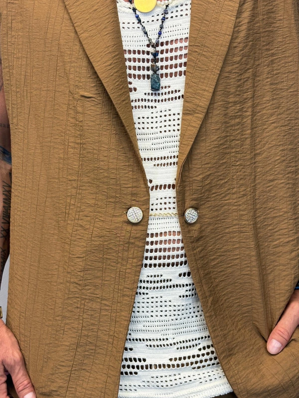 İpek Desenli Düğme Detaylı Takım Kahverengi
