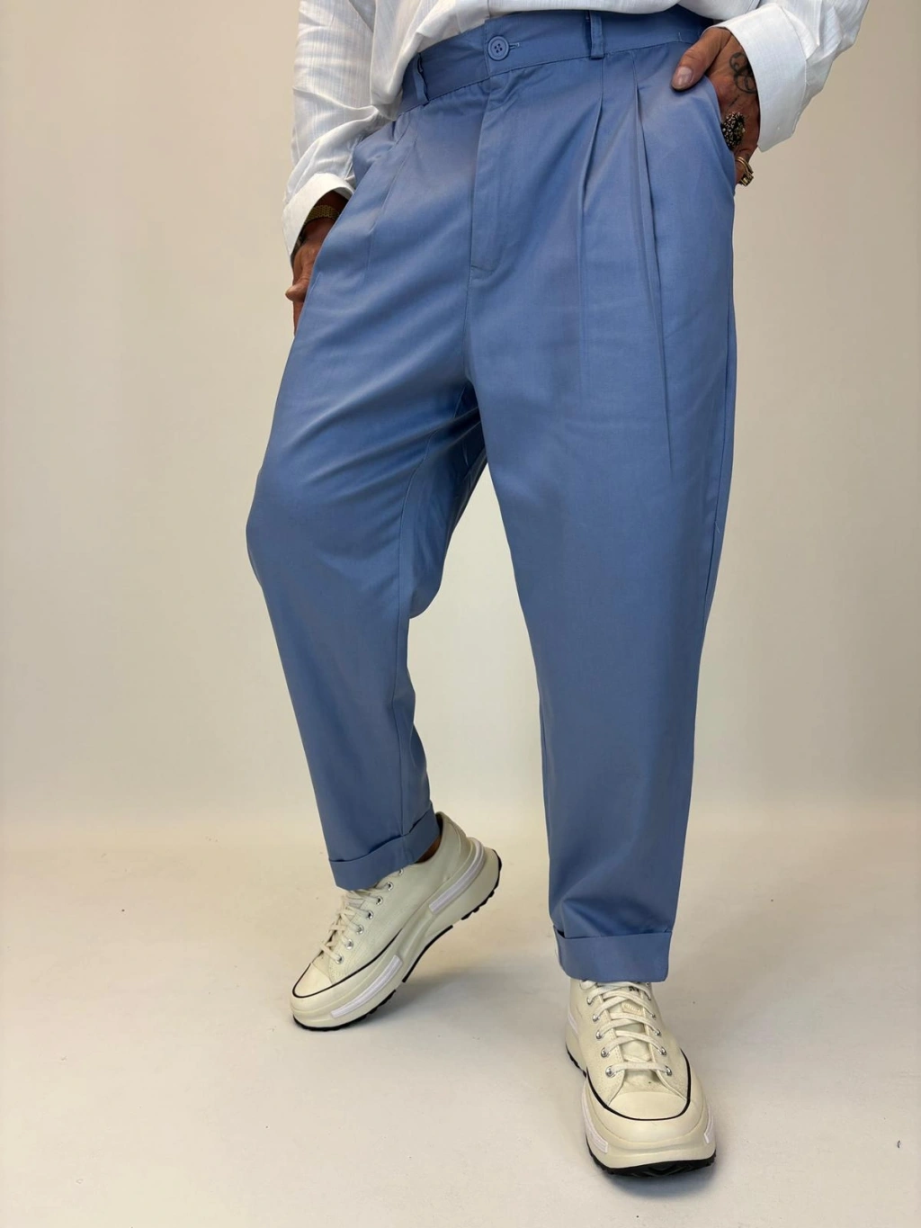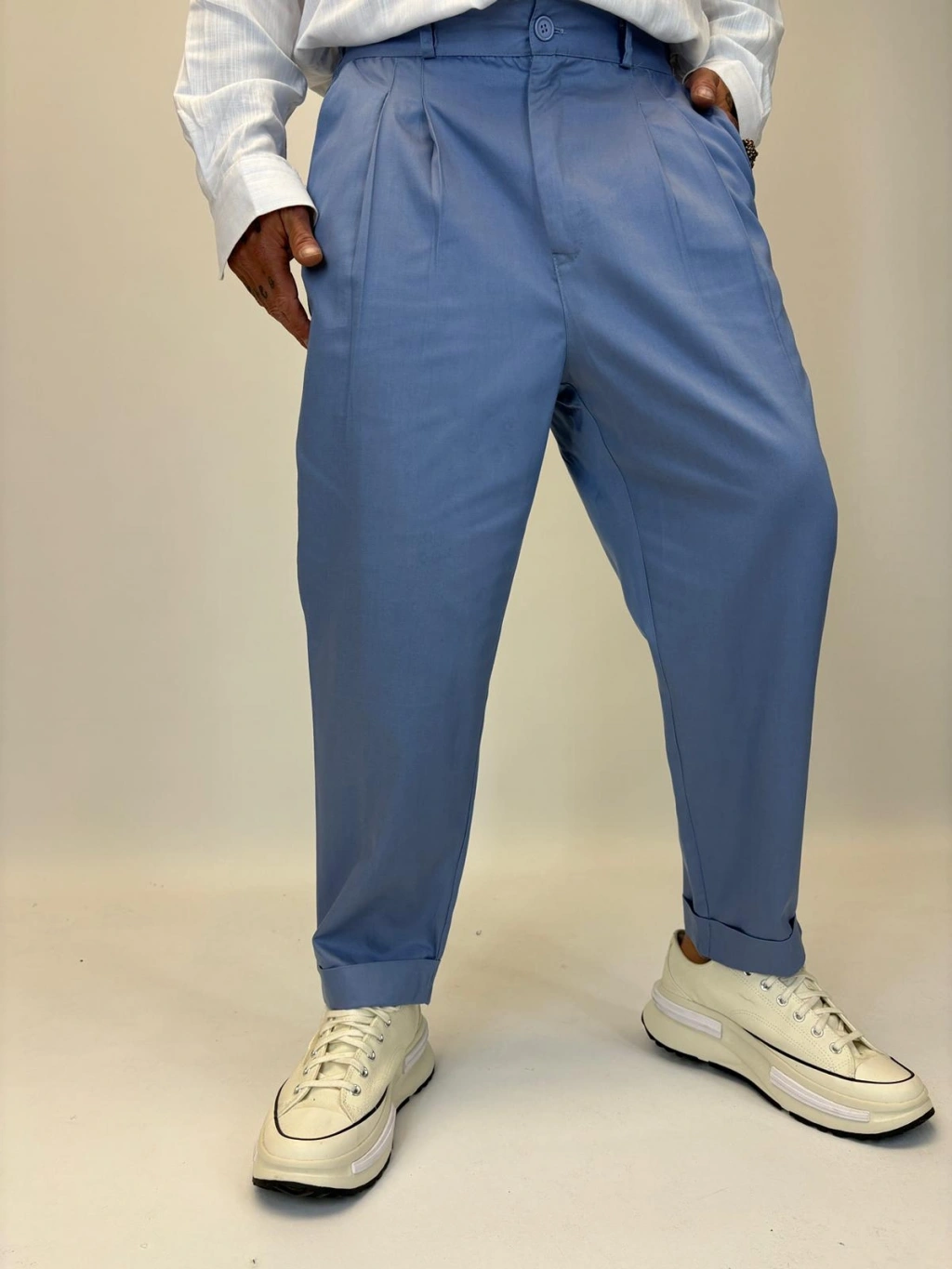 İtalyan Double Paça Pileli Pamuk Saten Pantolon İndigo
