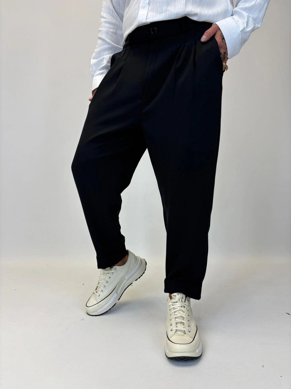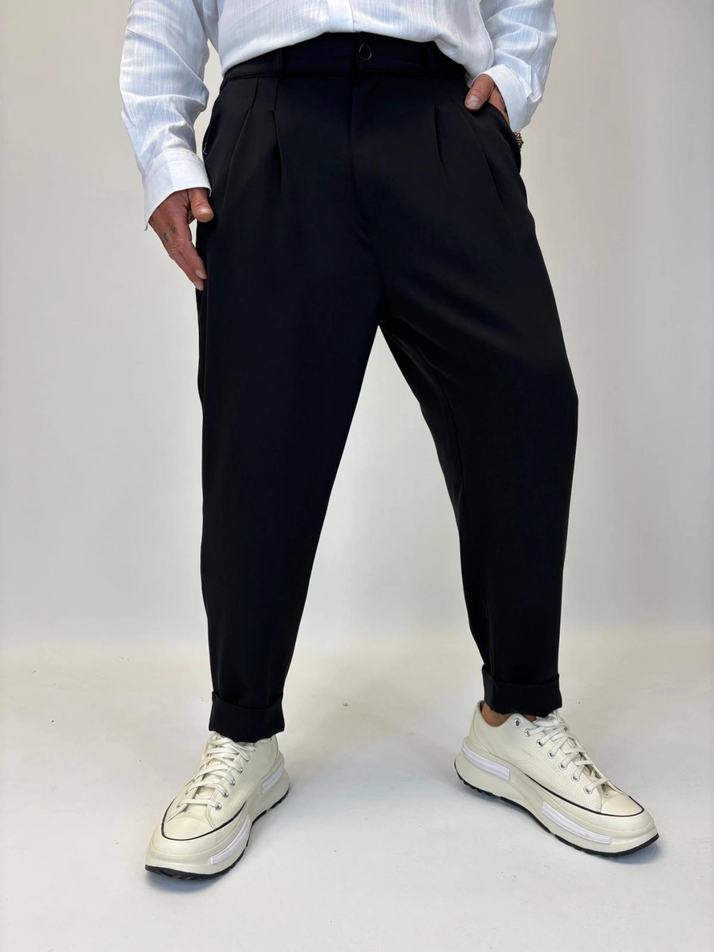 İtalyan Double Paça Pileli Pamuk Saten Pantolon Siyah