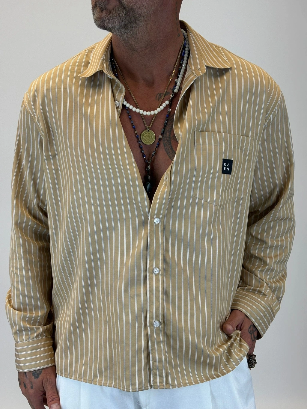 Kaen Çizgili Oversize Gömlek Camel