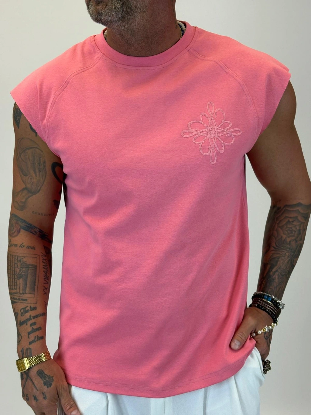 Nakış Detaylı Sleeveless T-shirt Pembe