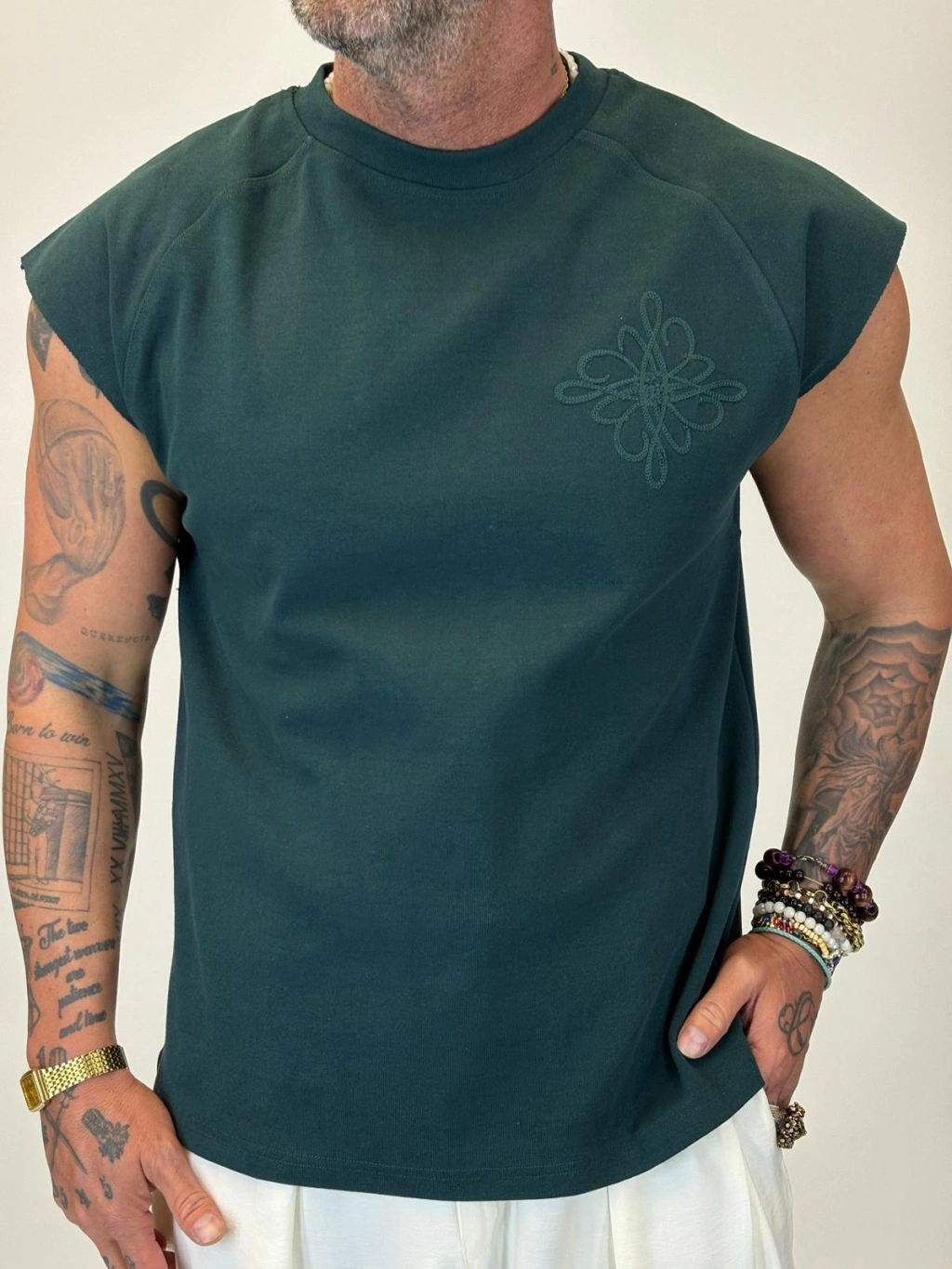Nakış Detaylı Sleeveless T-shirt Yeşil