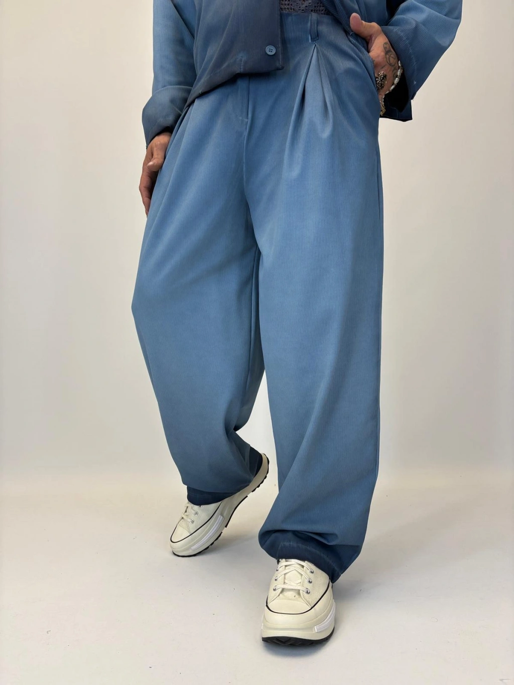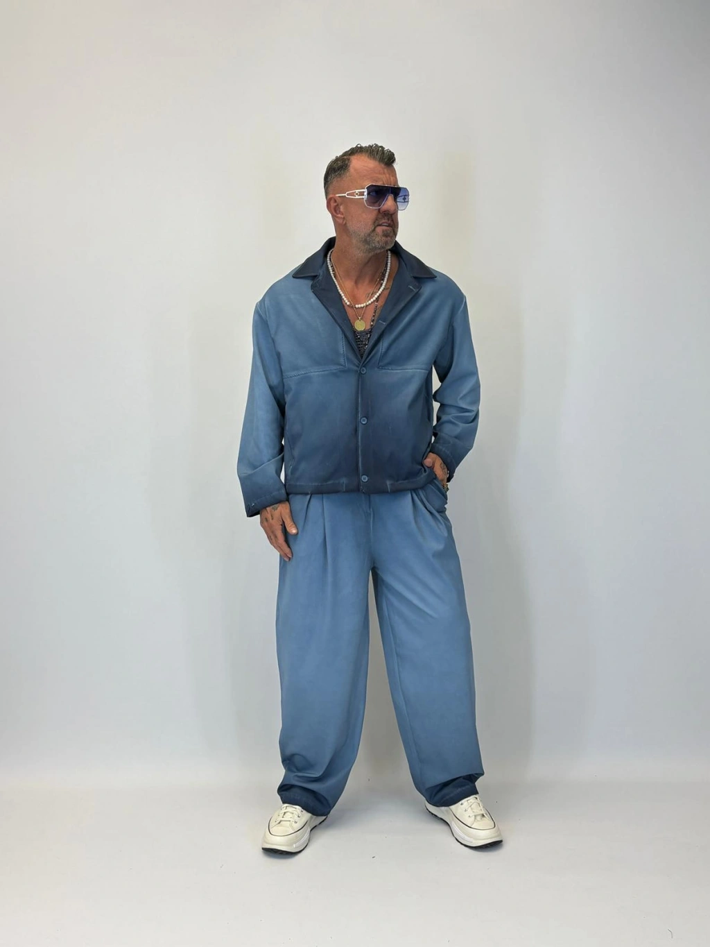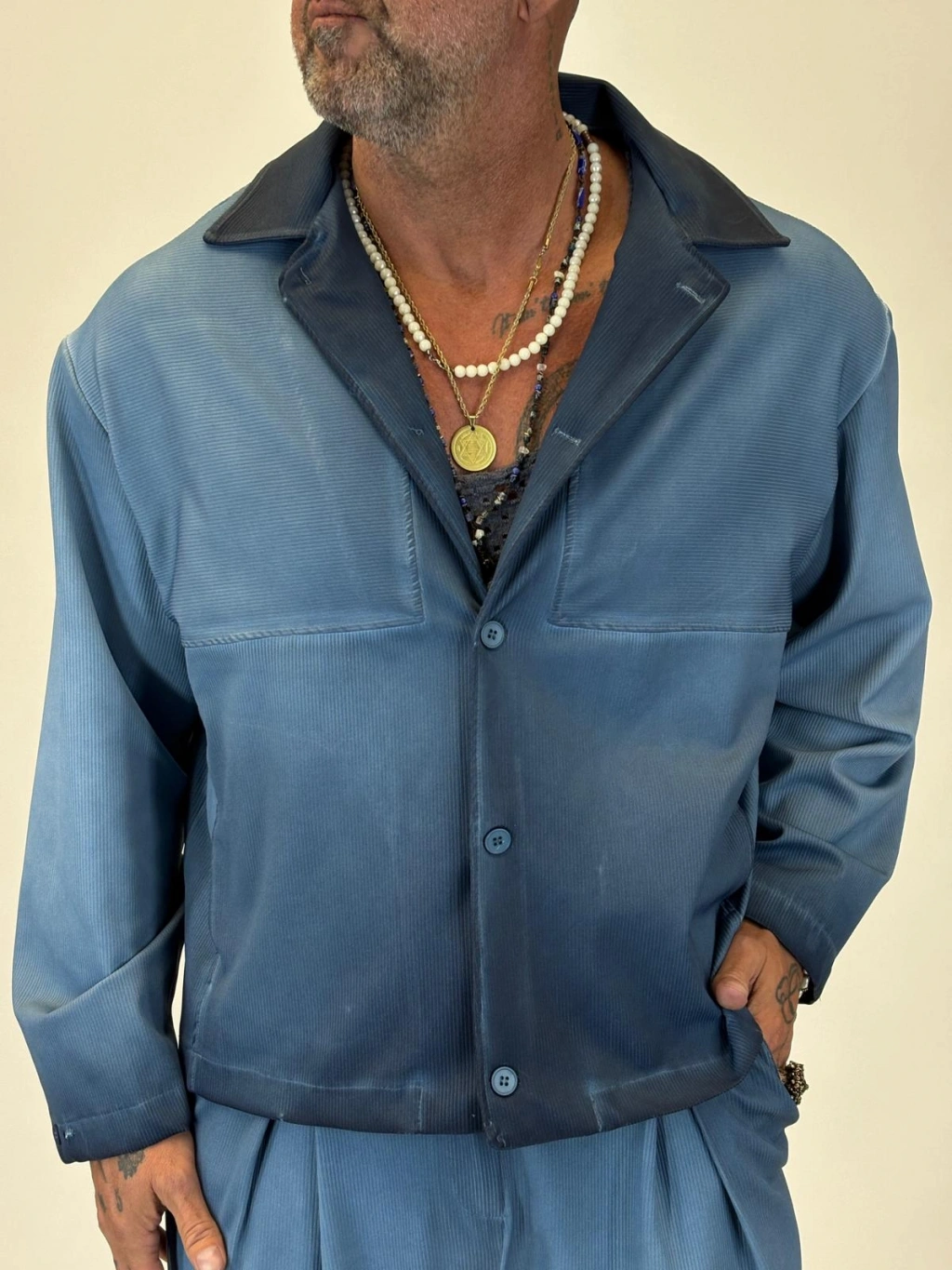 Oil Washed Takım Mavi