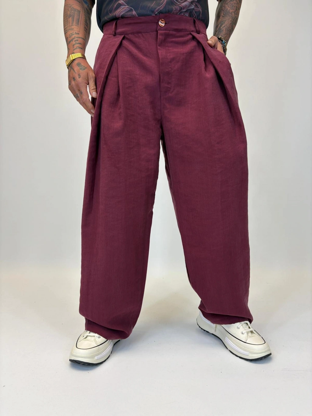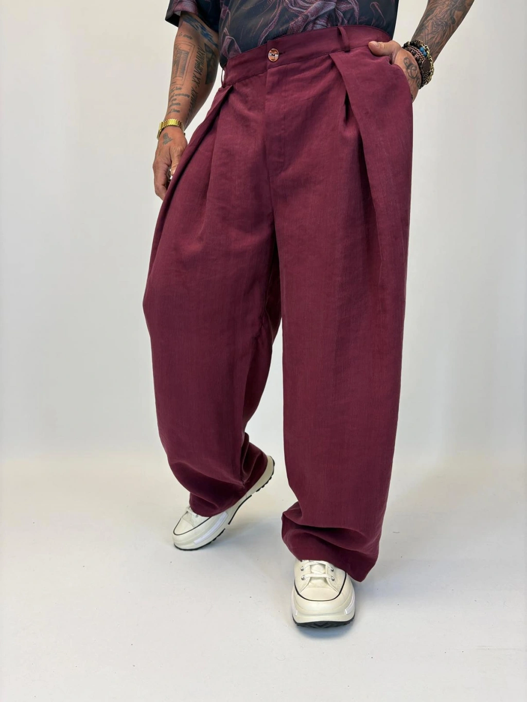 Organic Tesla Çapraz Pile Pantolon Bordo