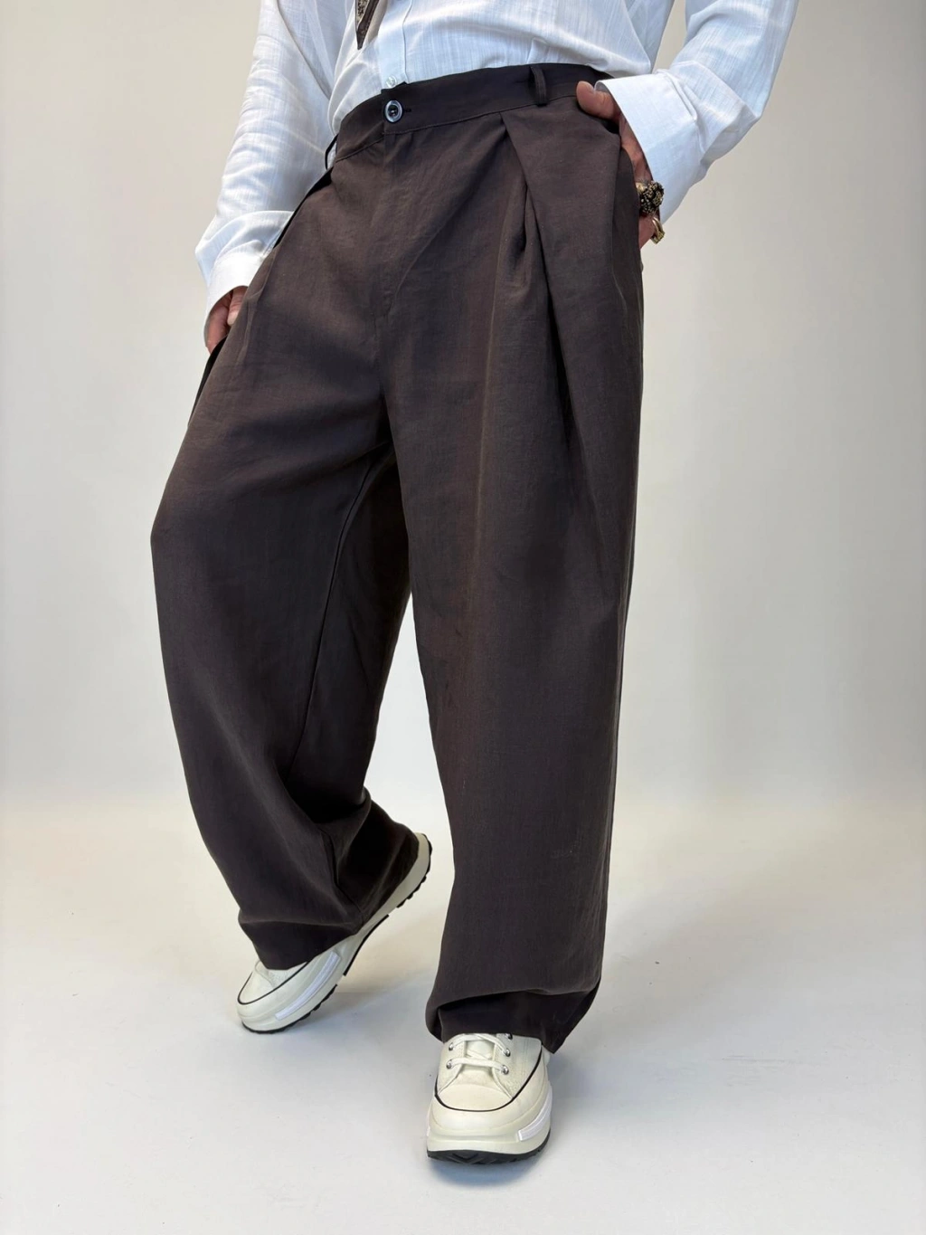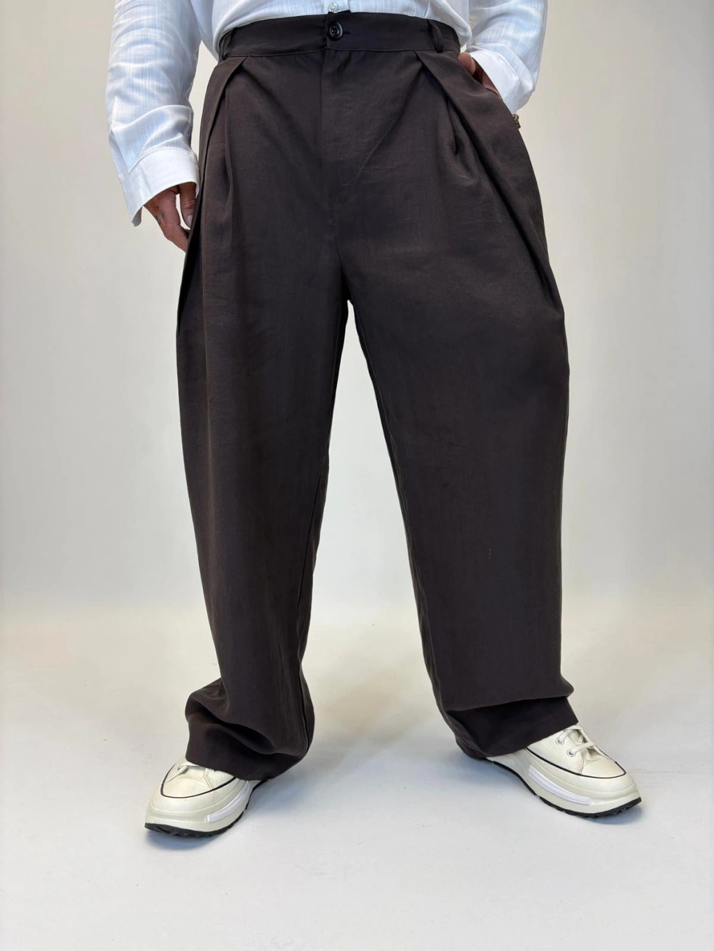 Organic Tesla Çapraz Pile Pantolon Kahve