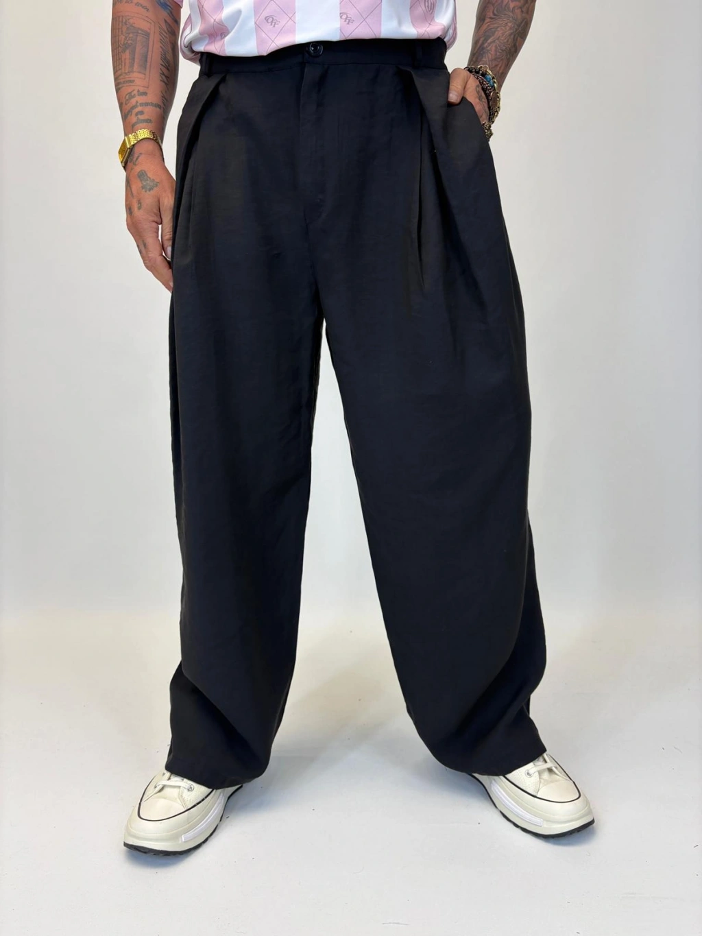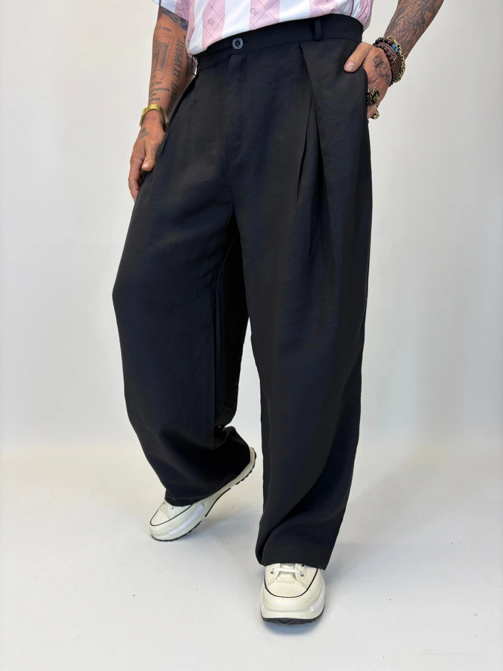 Organic Tesla Çapraz Pile Pantolon Siyah