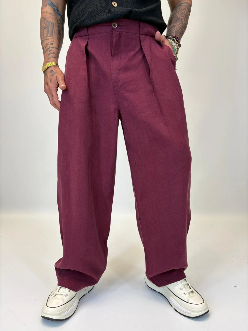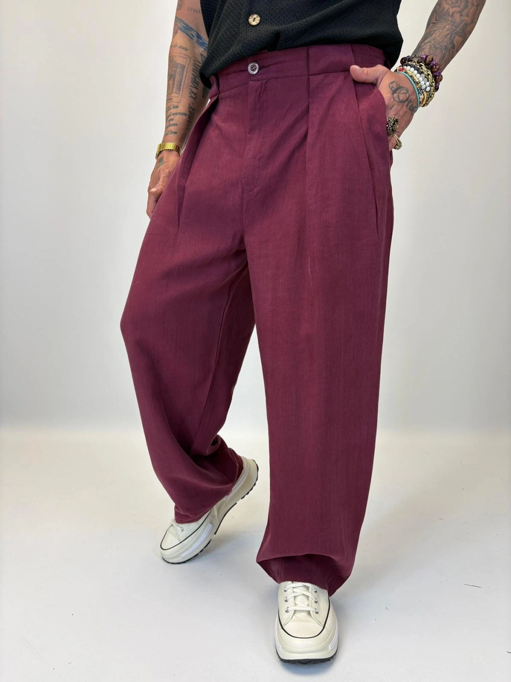 Organic Tesla Geniş Köprülü Pantolon Bordo