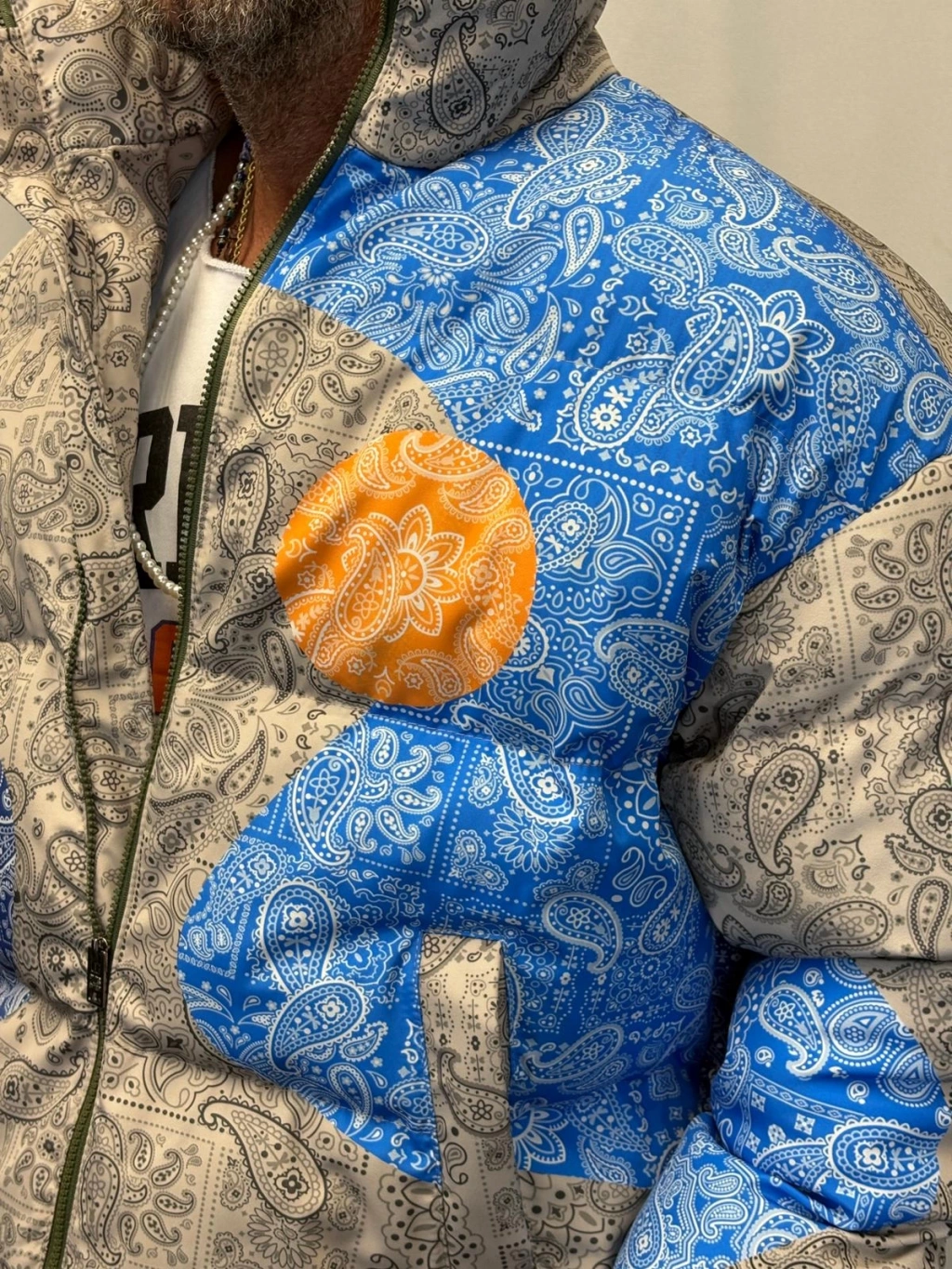 Özel Tasarım ŞAL Desenli Puffy Mont
