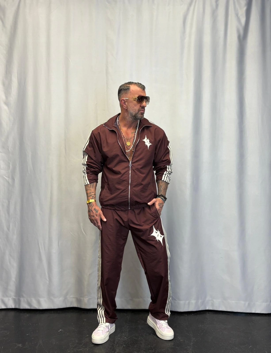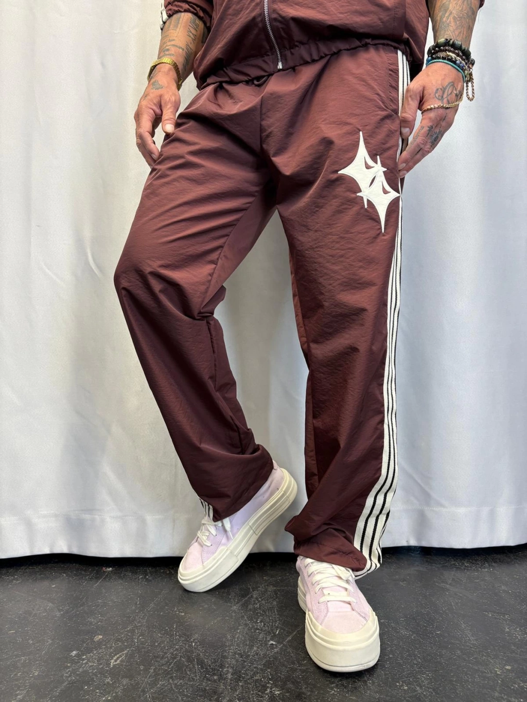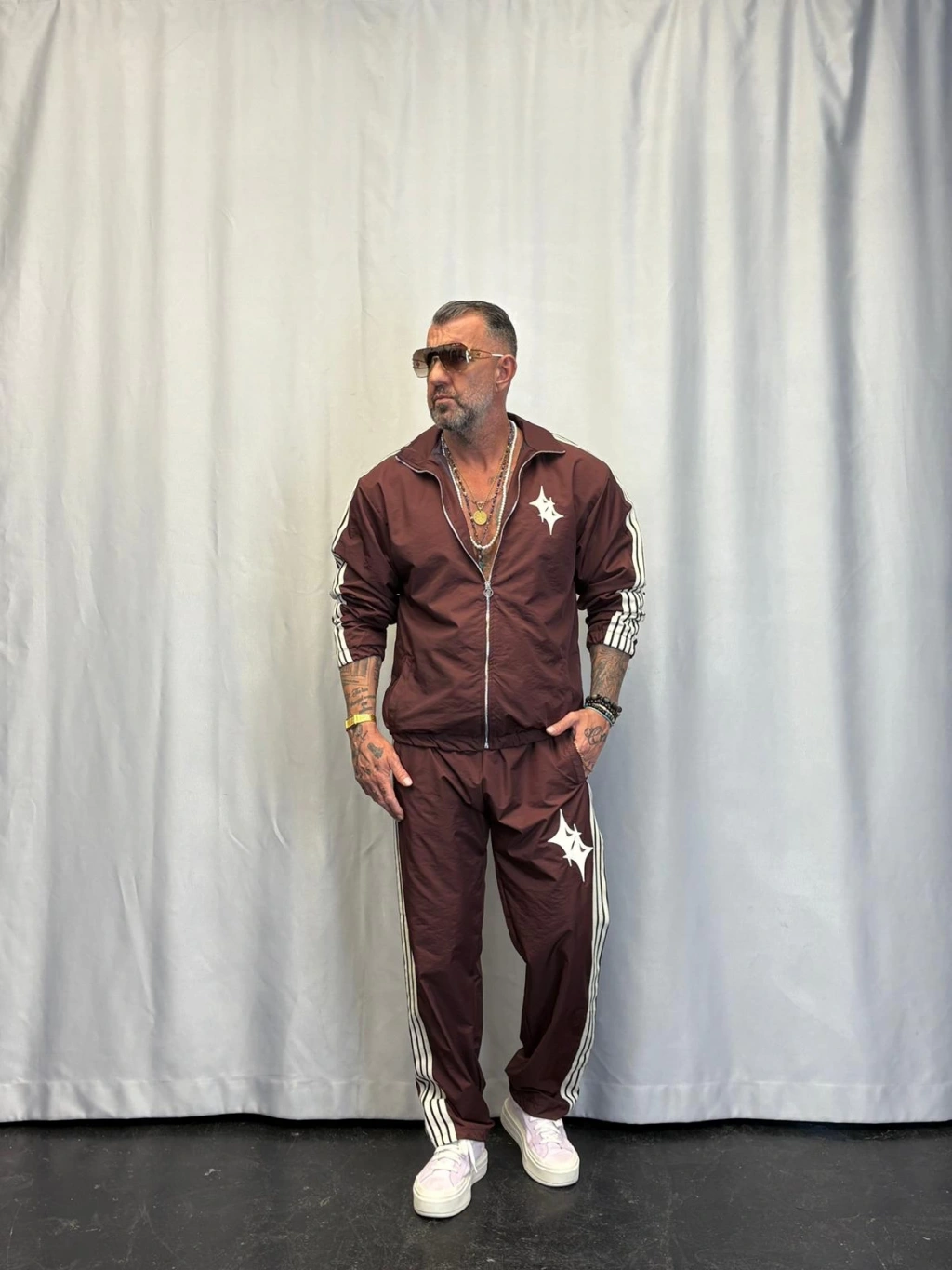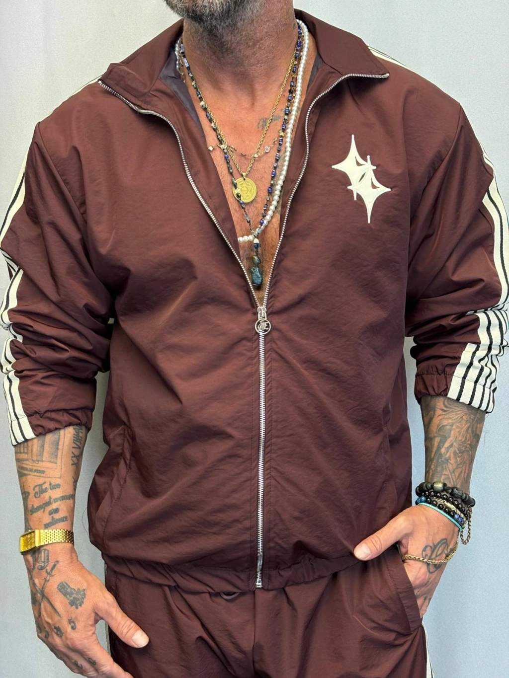 Powder Deri Nakış Detaylı Takım Kahverengi