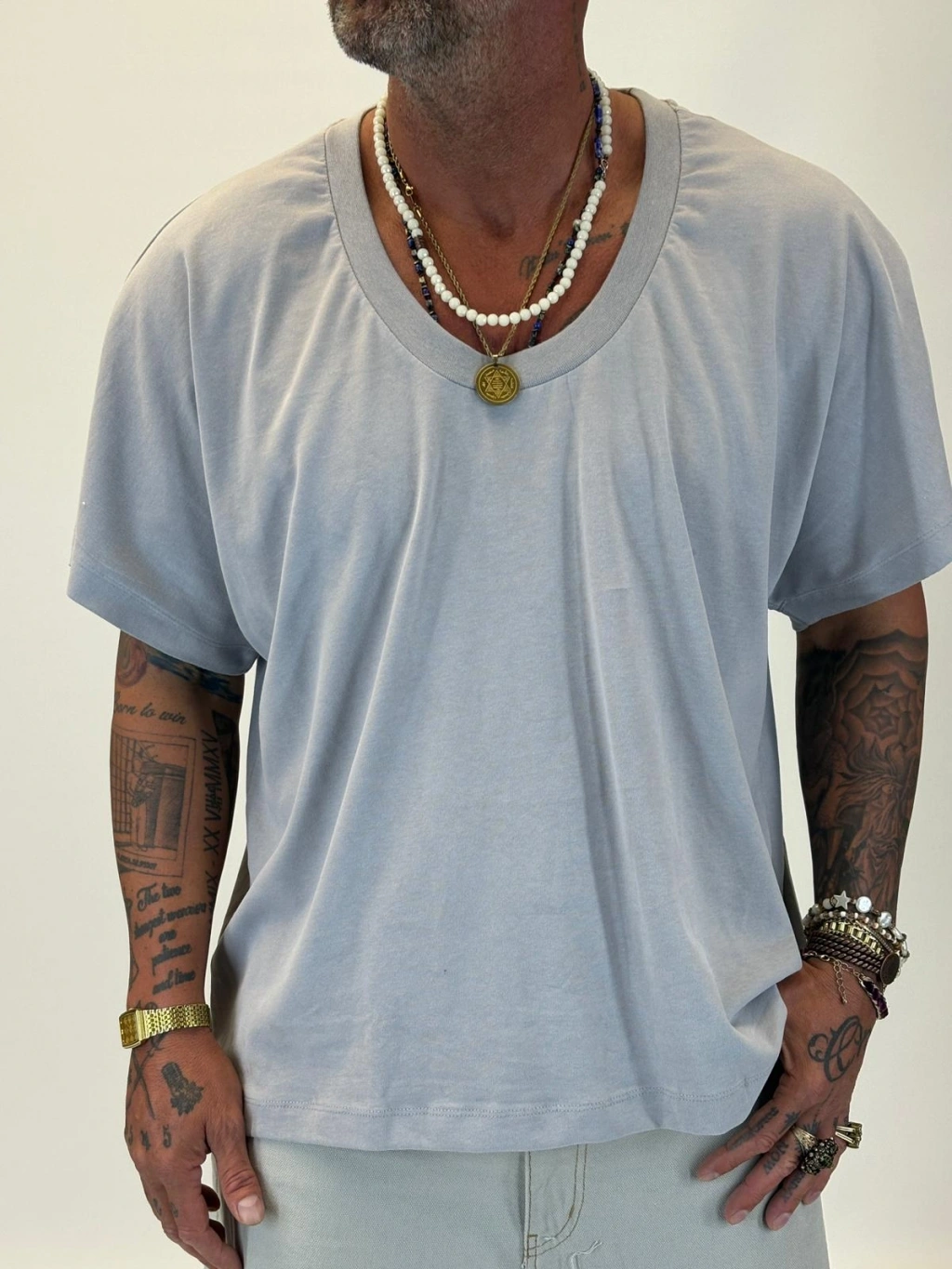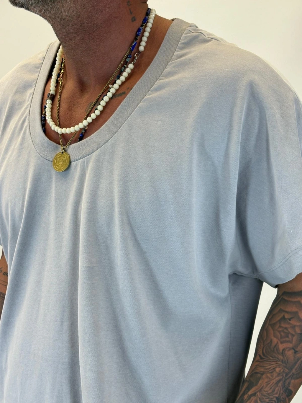Tky Açık Yaka Oversize Crop T-shirt Gri