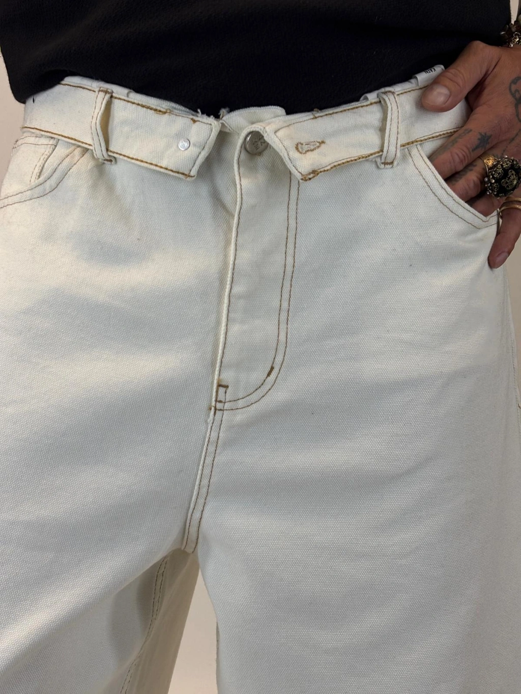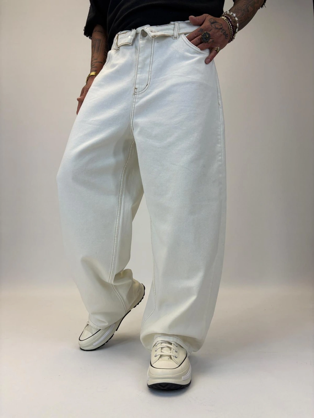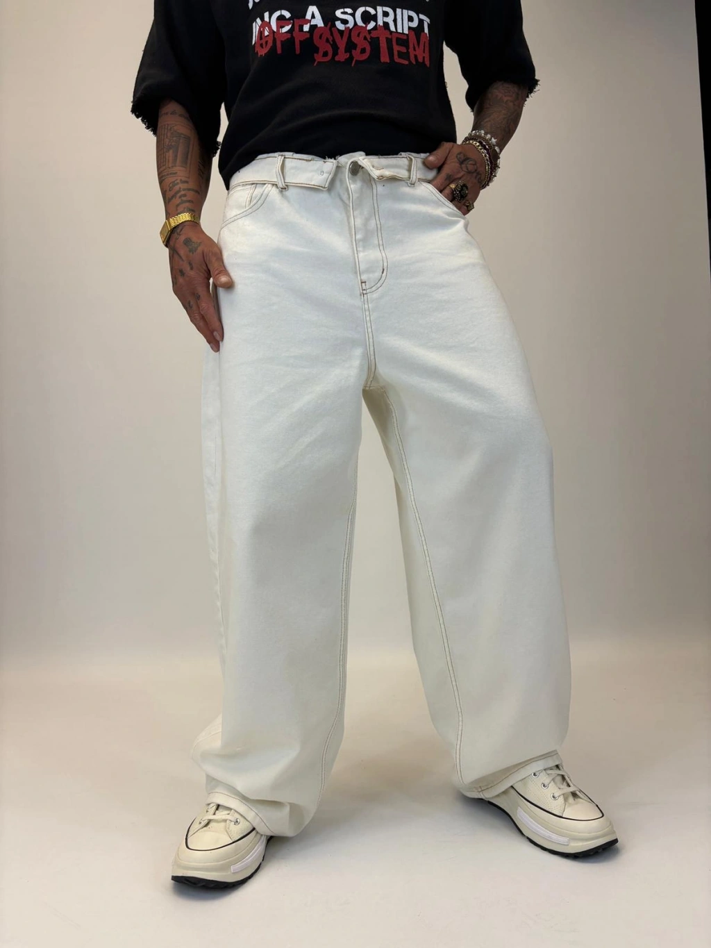 Tky Süper Baggy Yıkamalı Pantolon Beyaz