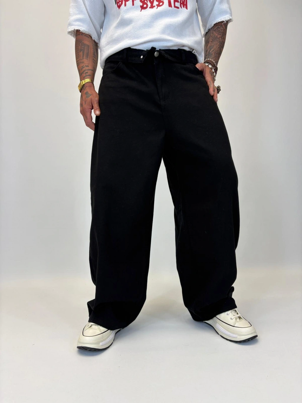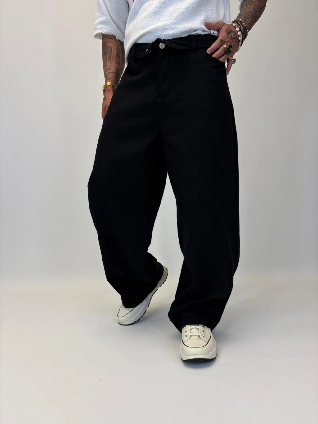 Tky Süper Baggy Yıkamalı Pantolon Siyah