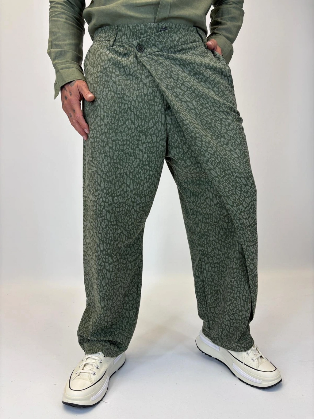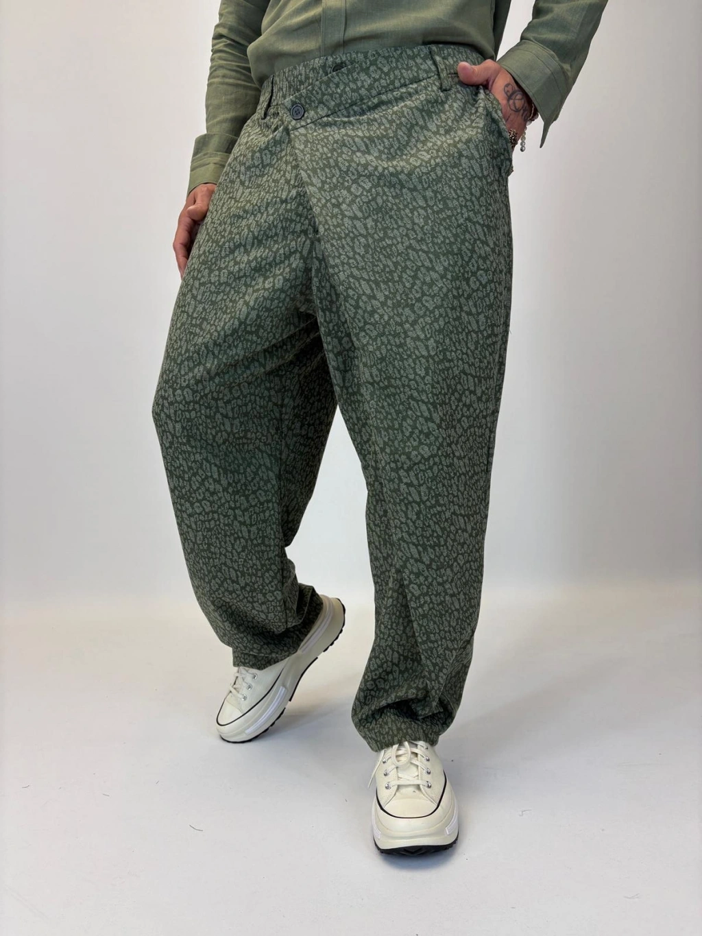 Tokyo Style Jakarlı Pantolon Yeşil