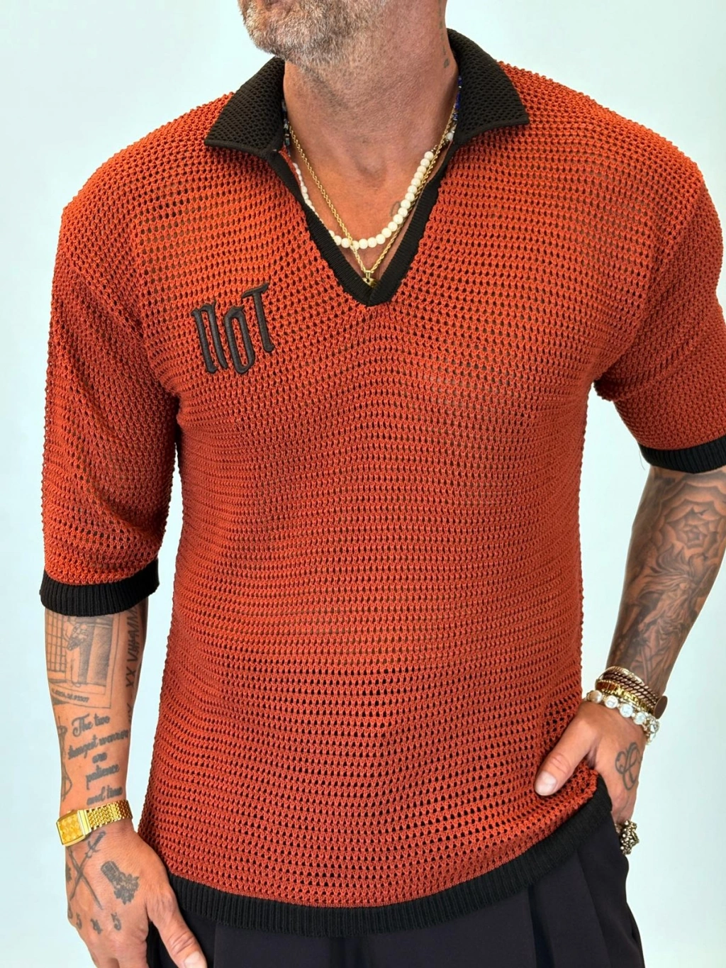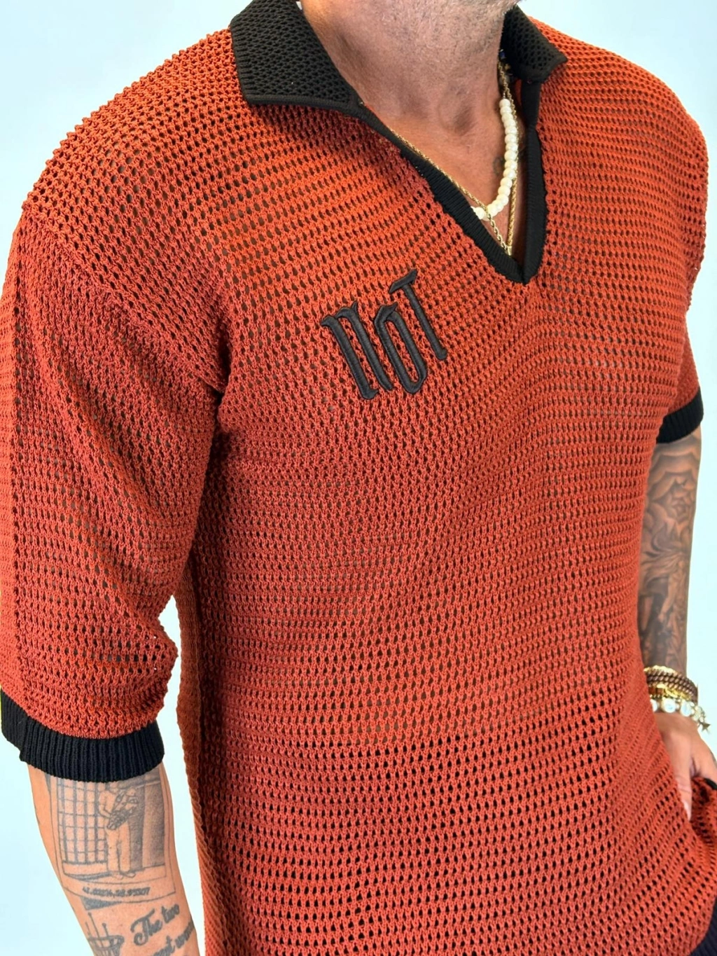Triko Akrilik 99 V Yaka T-Shirt Turuncu