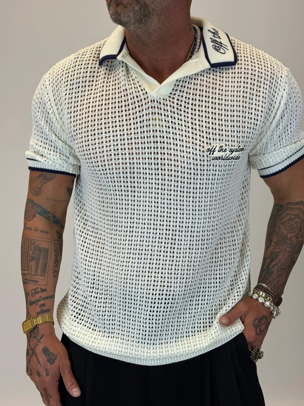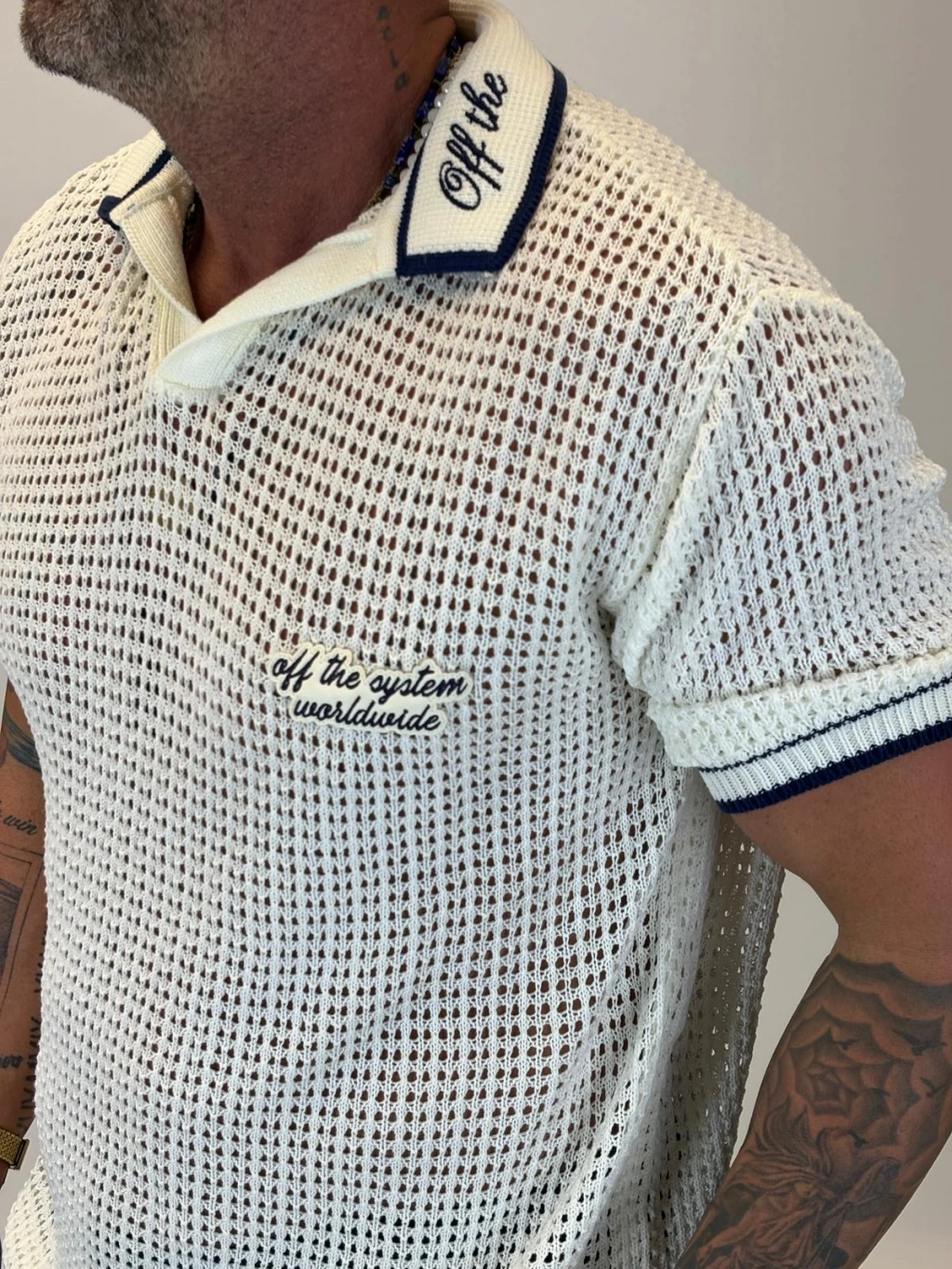 Triko Akrilik Yakası Nakış Detaylı Beyaz