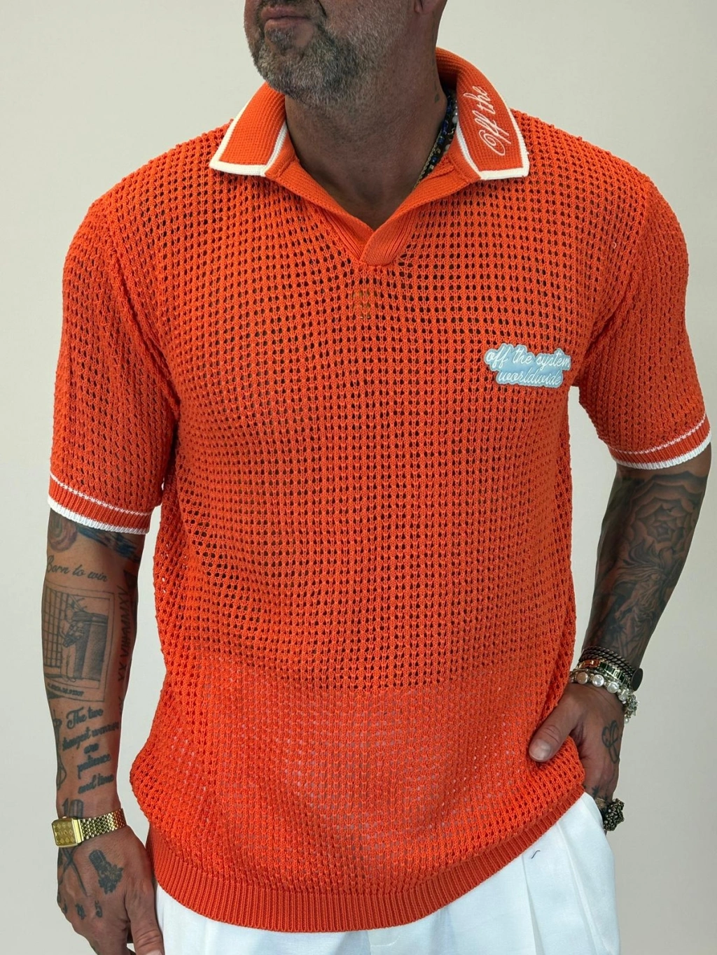 Triko Akrilik Yakası Nakış Detaylı Turuncu