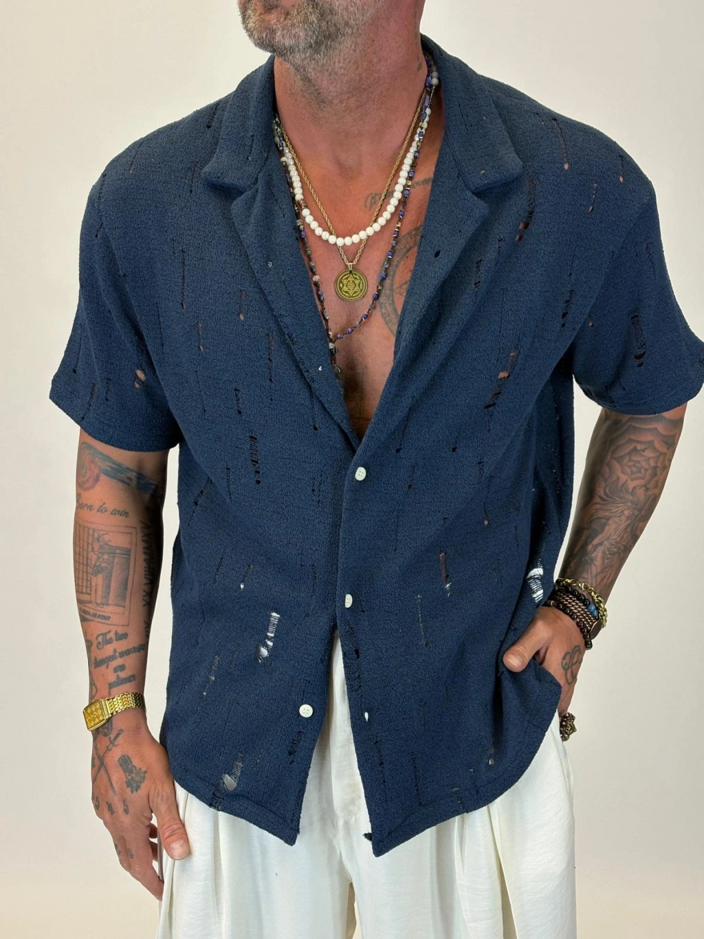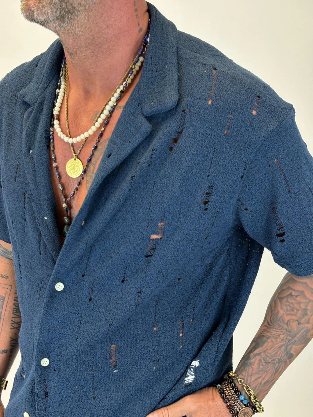 Triko Akrilik Yıpratma Gömlek Lacivert