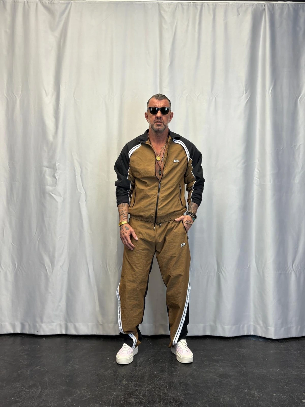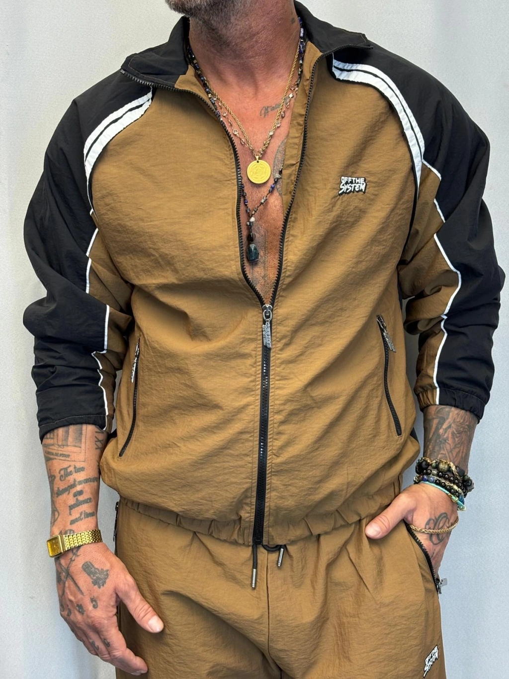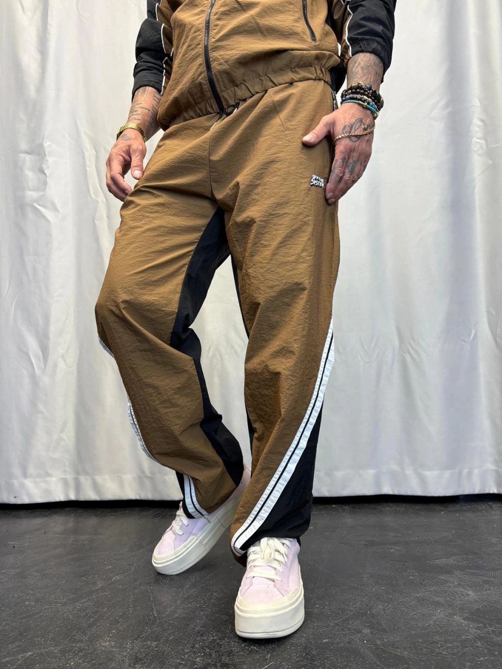 Vintage Şerit Detaylı Takım Camel