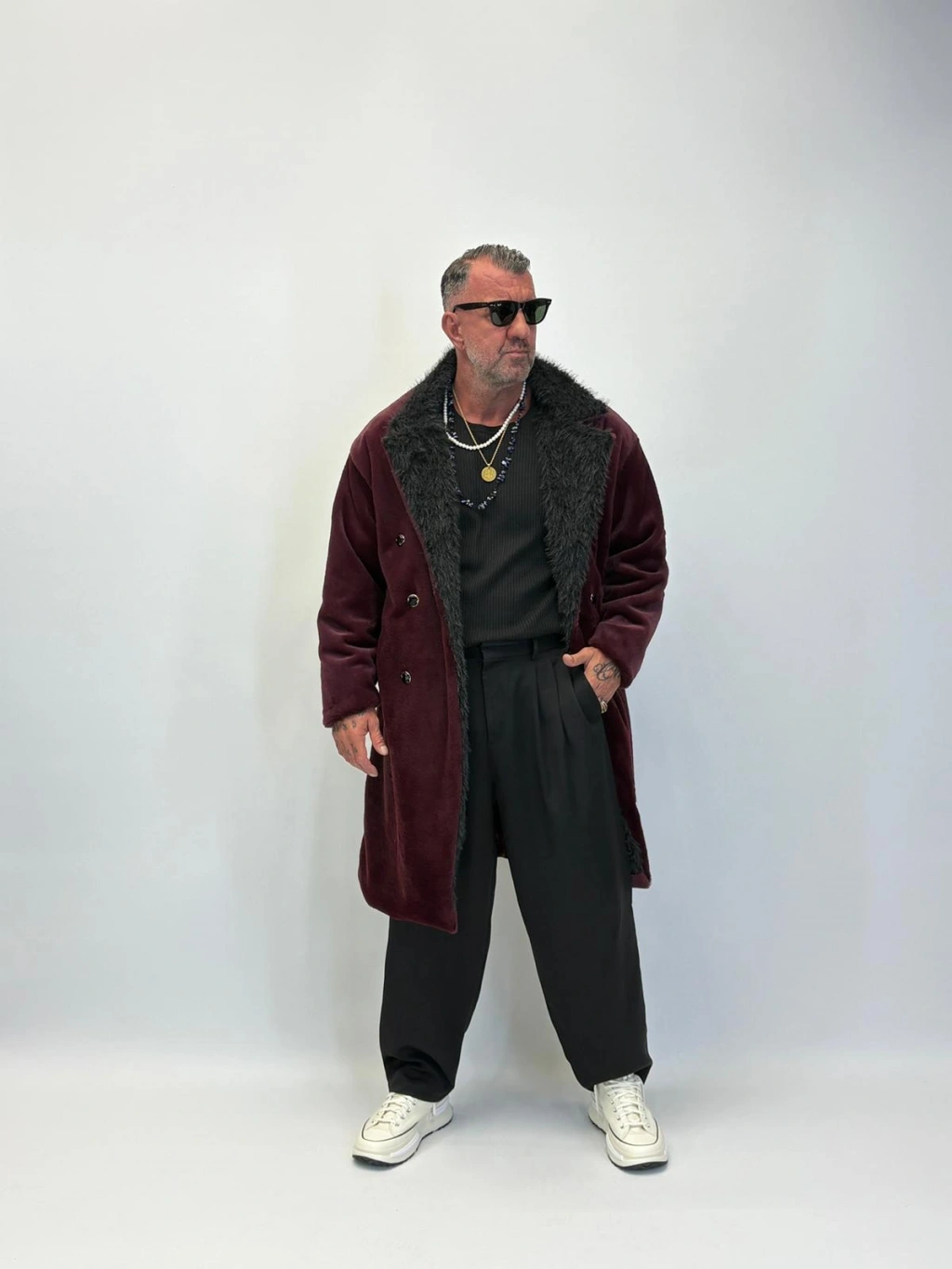 WELBOA Yakası Capo Kürklü Kaban Bordo