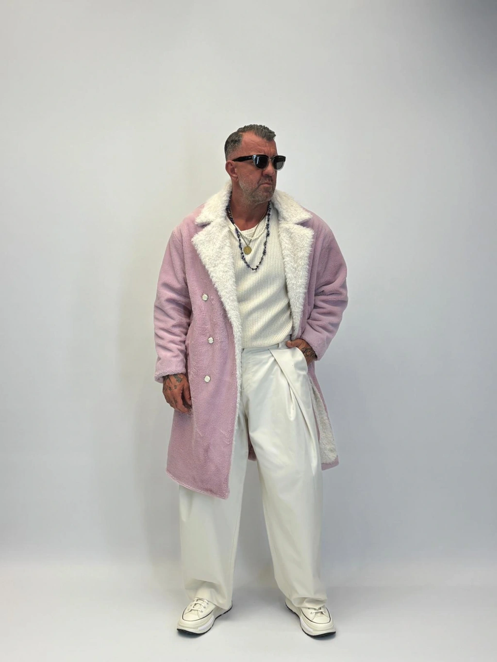 WELBOA Yakası Capo Kürklü Kaban Lila