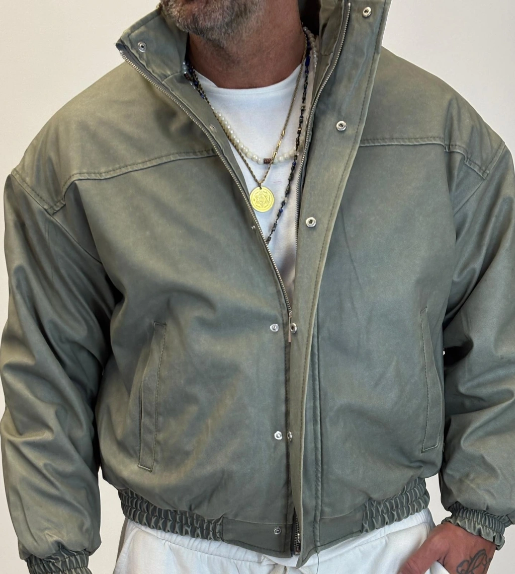 Yıkamalı İçi Kapitoneli Deri Mont Haki