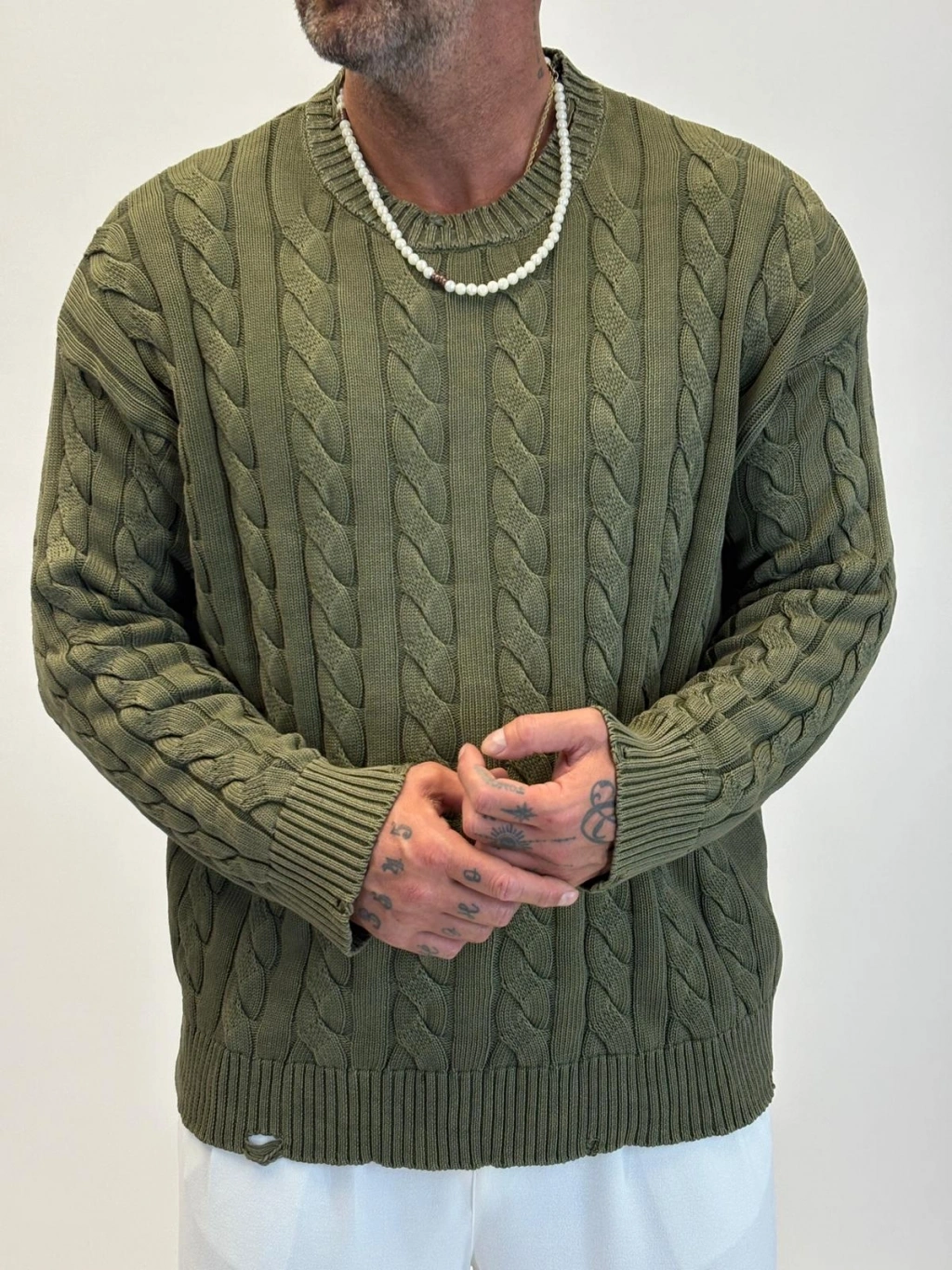 Yıkamalı Örgü Kazak Haki